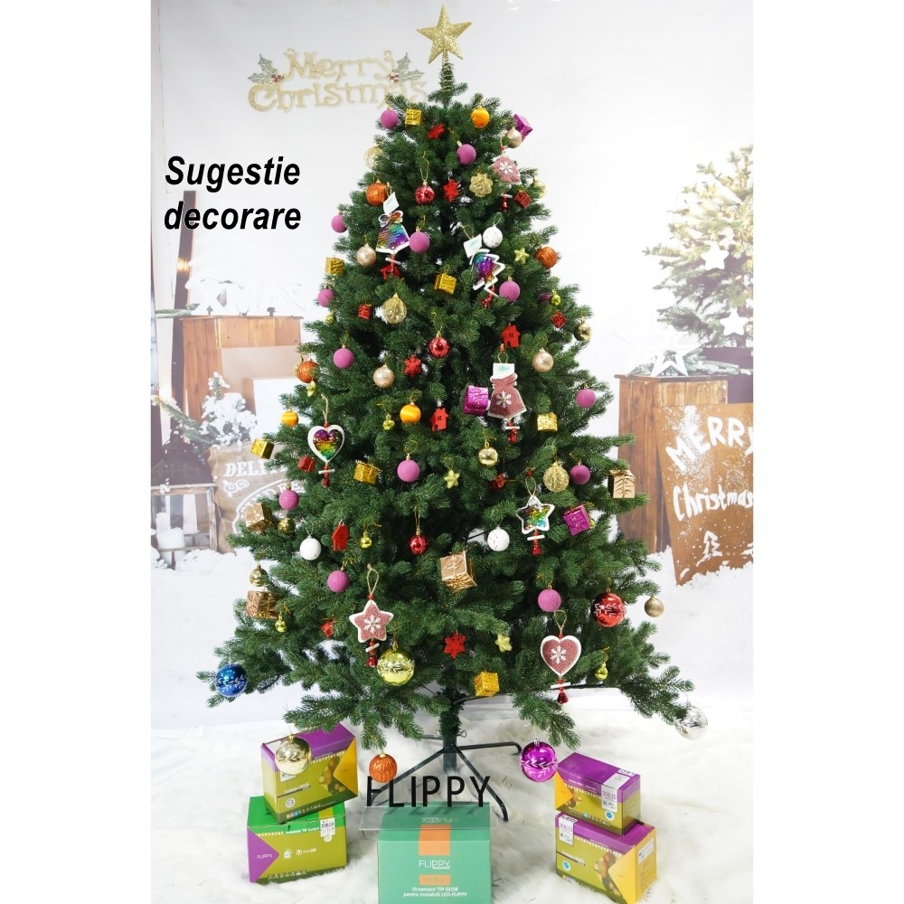 Brad artificial de Craciun, clasic, pentru interior/exterior, inaltime 210 cm, diametru 138 cm, 858 ramuri, , verde, suport metalic inclus