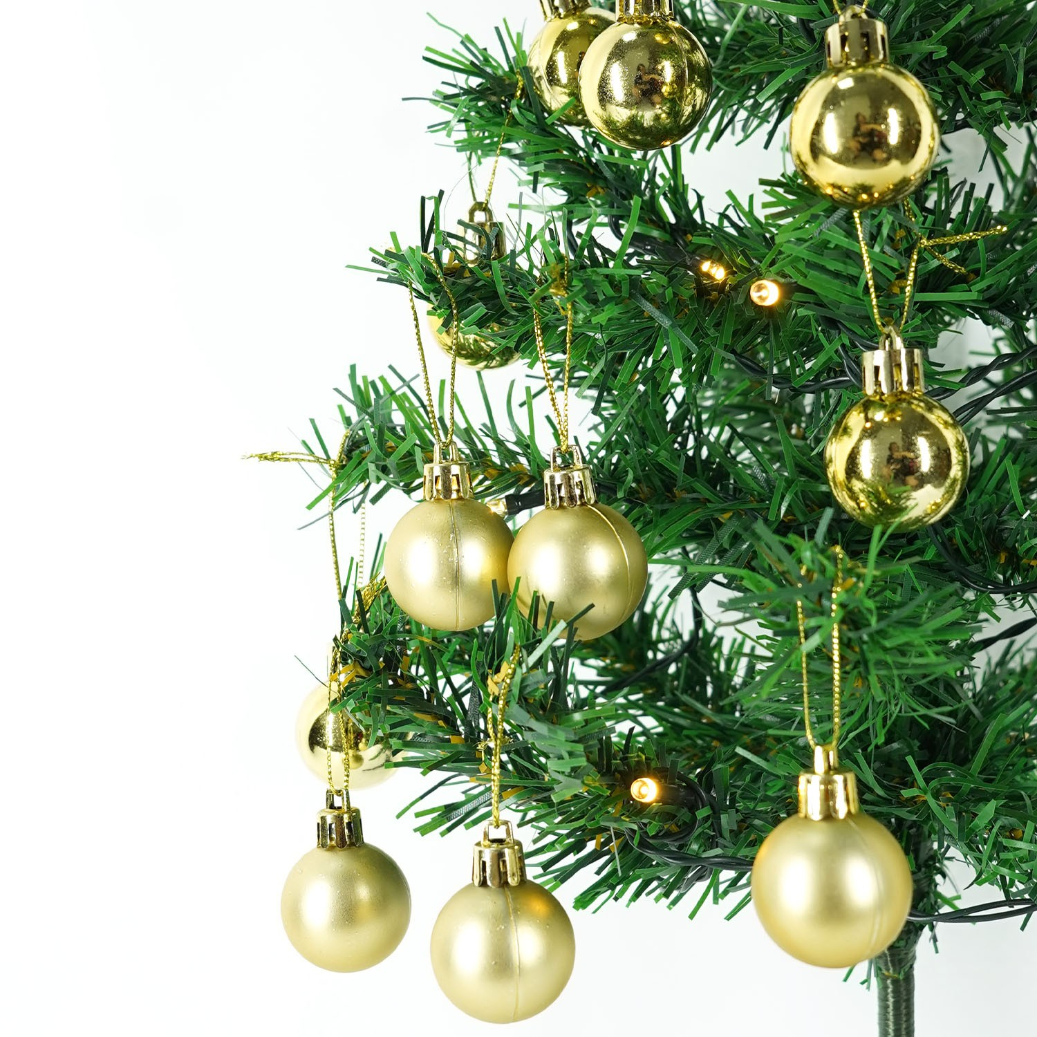 - 20 globuri aurii prevazute cu snurulet pentru agatare.