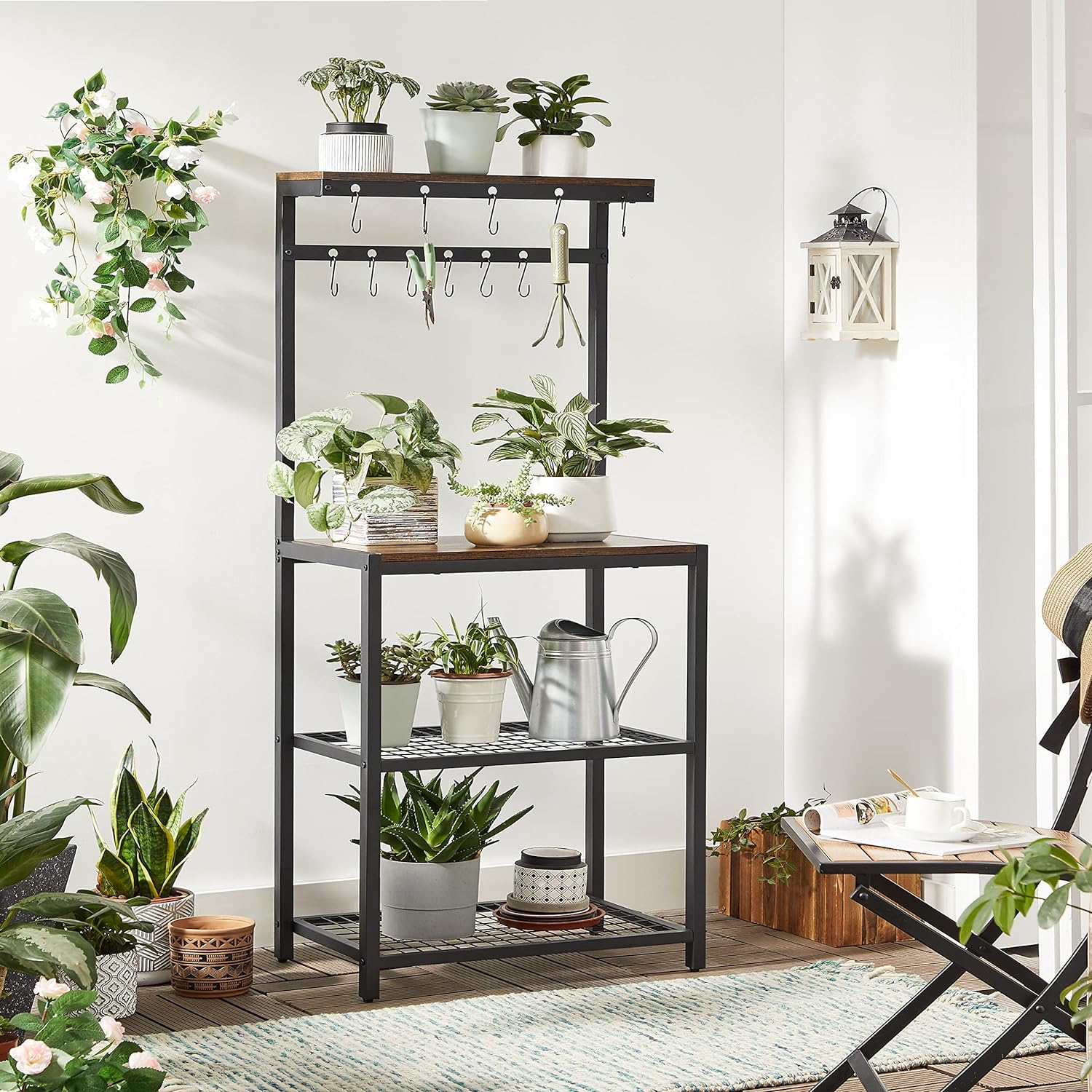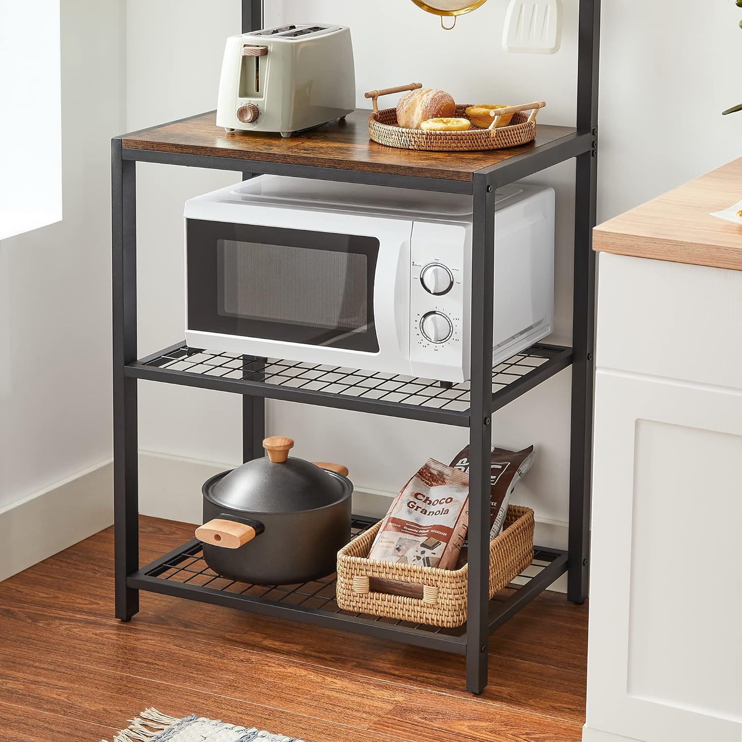 VASAGLE Raft de bucatarie, suport pentru cuptorul cu microunde, cu 3 polite, 60x40x152cm, maro rustic