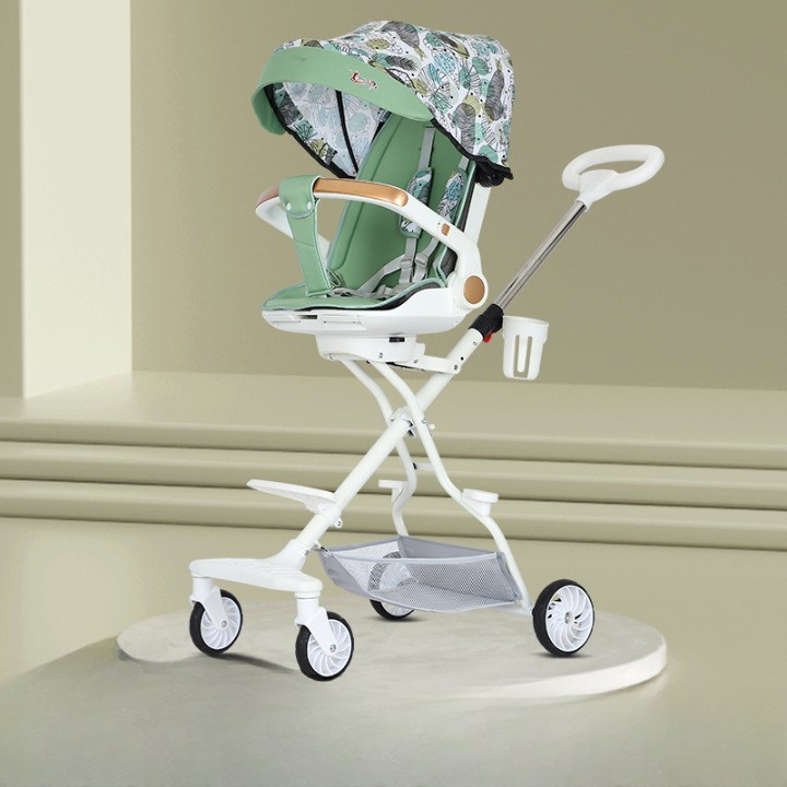 Carucior Sport 3in1, 6-36 Luni, Reversibil, Pliabil, Tavita pentru Masa, Pozitie de Somn, Centura de Siguranta, Roti 360, Suport Pahar, Copertina pentru Soare, 32x63x95cm, Verde Model Frunze