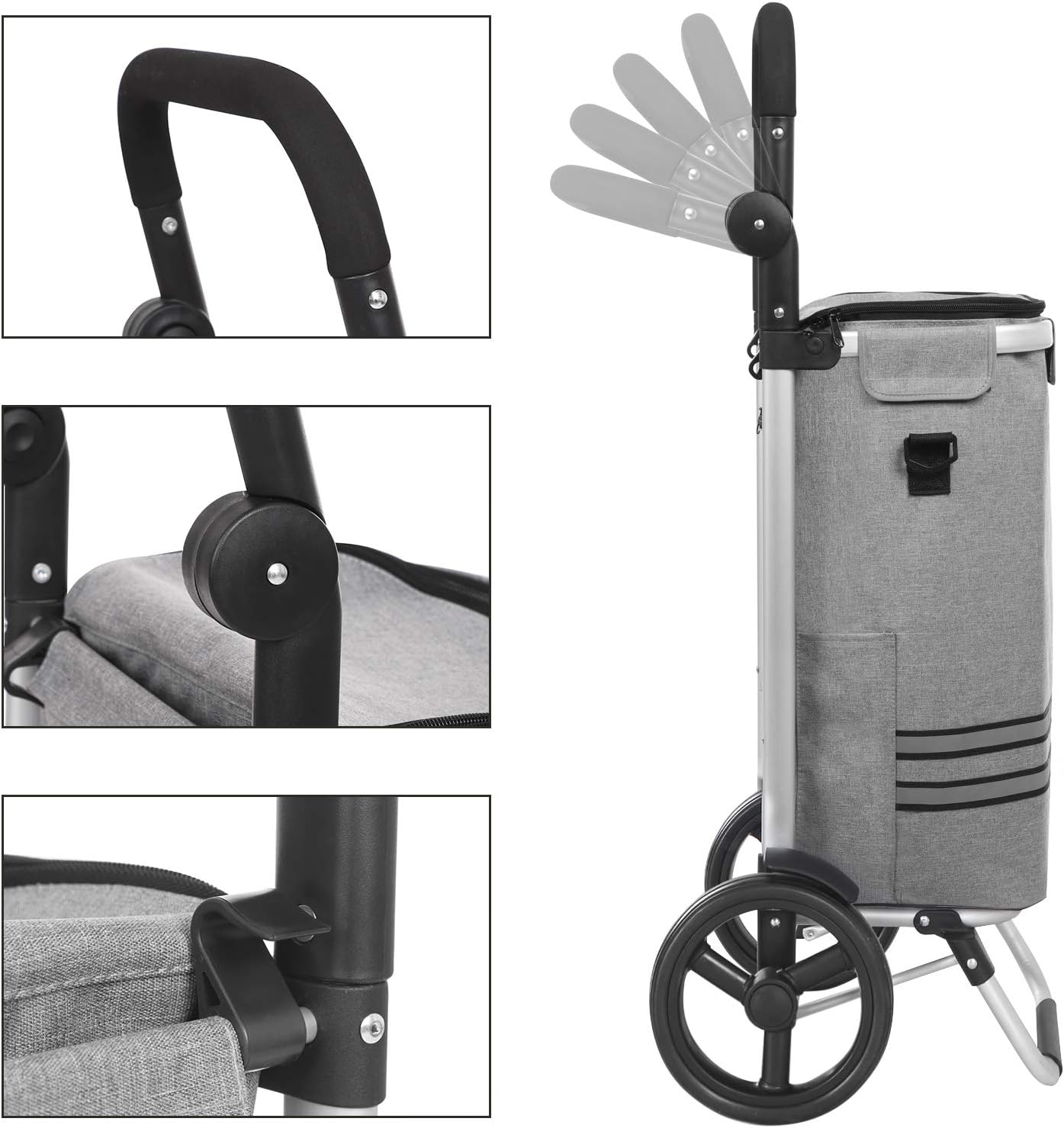 SONGMICS Carucior de cumparaturi piata, pliabil, compartiment frigorific, multifunctional, 44x35x100 cm, gri