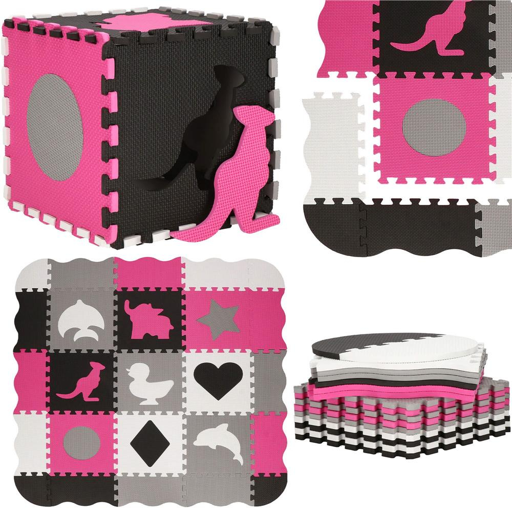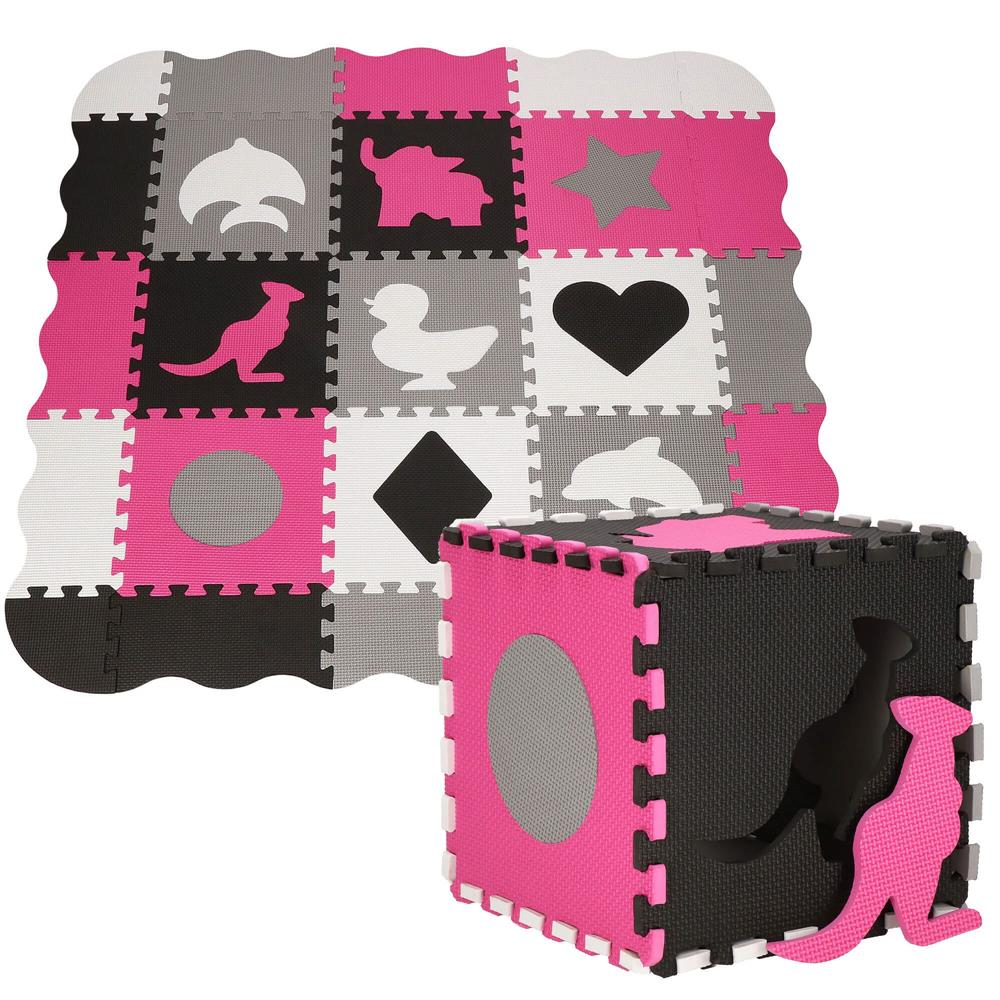 Material: spuma EVA Design: Forme Culoare: alb, gri, roz, negru Numar de puzzle-uri: 9 Numar de margini: 12+4 mai mici Numarul tuturor elementelor: 34 (puzzle,...