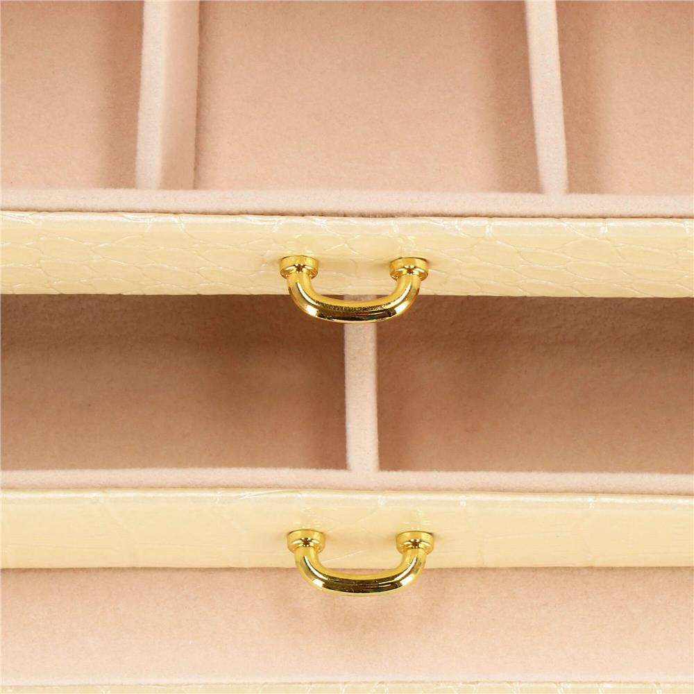 (DL) Cutie depozitare si organizare bijuterii, MDF, piele ecologica si velur, 17,5 x 14 x 12,5cm, crem