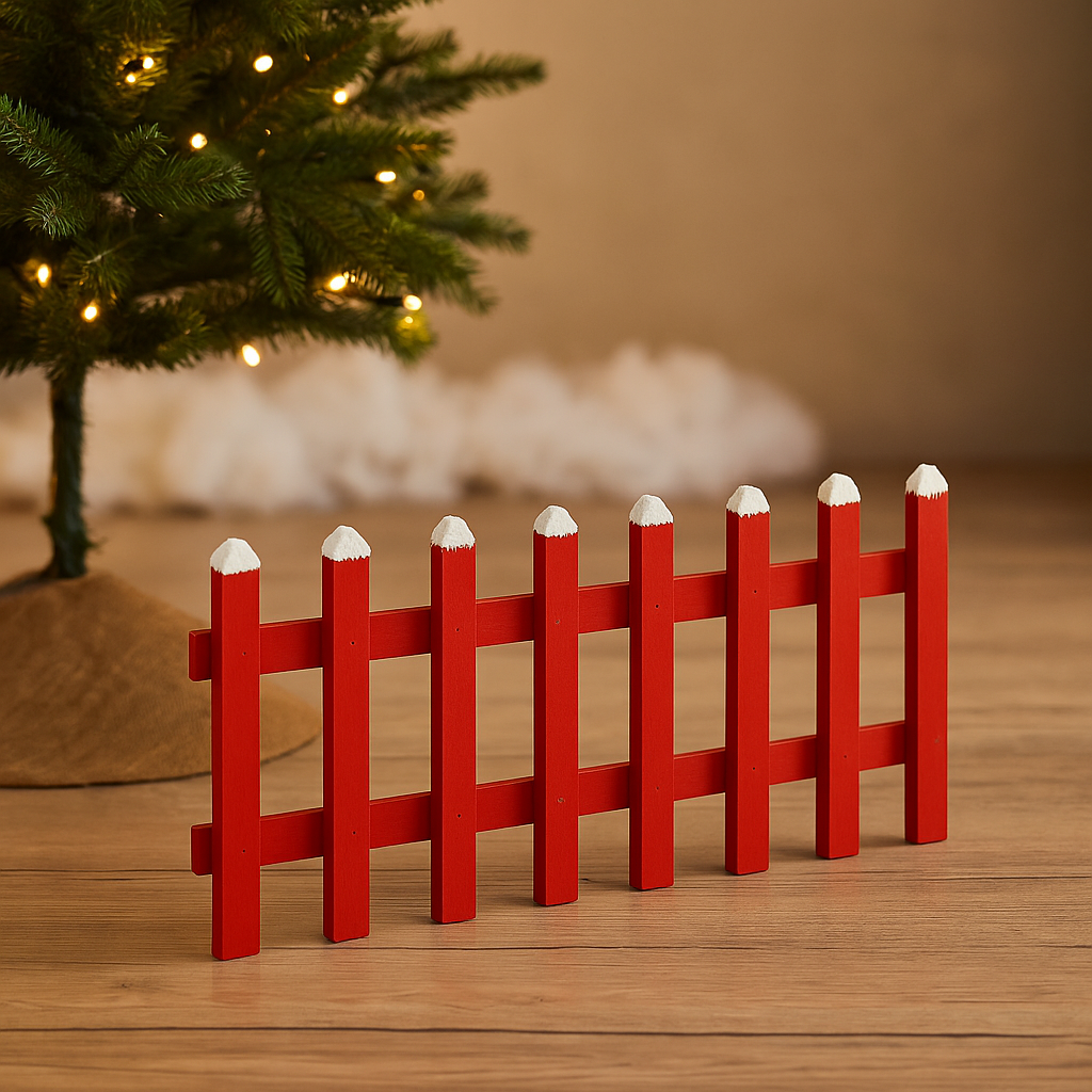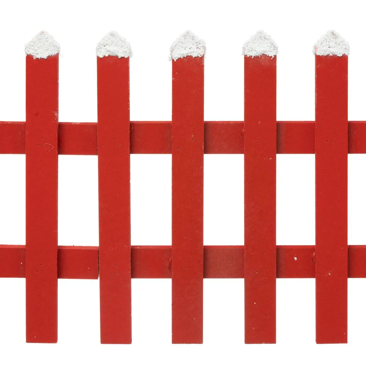 Gard decorativ din lemn, decor Craciun, 90x20x4 cm, rosu