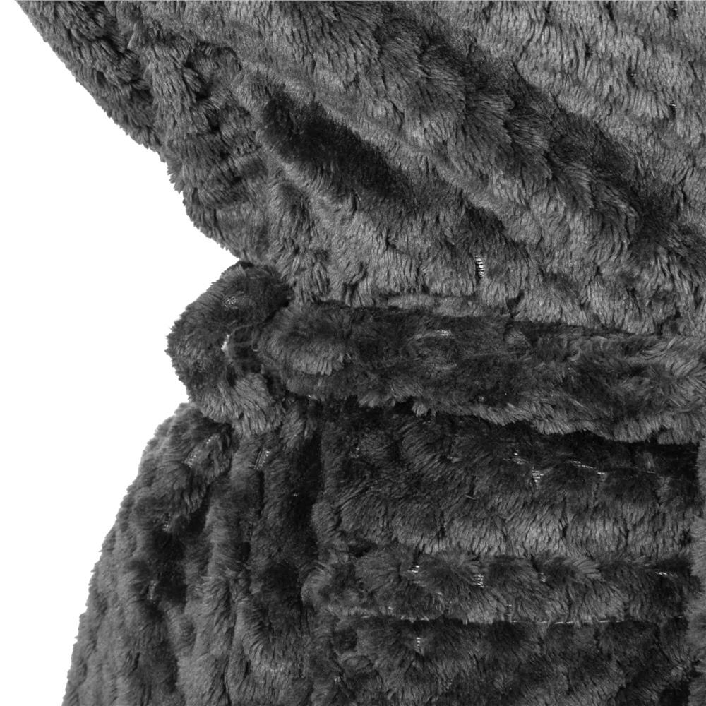 Material: poliester Textura: blana / blana falsa Culoare: gri inchis Dimensiune: L/XL Caracteristici: 2 buzunare incapatoare, gluga mare, curea pentru legare la talie, bucla de agatat Halatul de baie va va permite sa va bucurati de materialul placut si moale, asemanator plusului. Acesta a fost creat din fibre de inalta calitate, asigurand confort la fiecare pas.  Tesatura moale de plus – ofera confort si caldura.  Gluga – adauga eleganta si protectie impotriva frigului.  Doua buzunare frontale – spatiu de depozitare practic pentru obiecte mici.  Cureaua – reglabila pentru a se potrivi preferintelor dvs.  Durabilitatea tesaturii – plusul durabil isi pastreaza delicatetea si calitatea chiar si dupa multe spalari.  Perfect pentru a fi purtat atat dupa baie, seara cand va relaxati, cat si dimineata in timpul rutinei zilnice.  Ridicarea dispozitiei – purtarea halatului nostru de baie va poate ajuta sa va imbunatatiti starea de spirit, oferind un sentiment de placere. Halatul nostru de baie nu numai ca va va fermeca prin aspectul sau placut, dar va va oferi si o functionalitate nepretuita. Cu o gluga care adauga o nota eleganta si buzunare frontale practice, veti avea intotdeauna loc pentru telefon, telecomanda sau obiecte mici.. In plus, este prevazut cu o curea practica in talie, permitand o potrivire perfecta.Halatul de baie va deveni partea preferata a ritualului tau zilnic de relaxare. Asortati-l cu ceaiul sau cartea preferata si simtiti cum fiecare zi devine putin mai speciala.