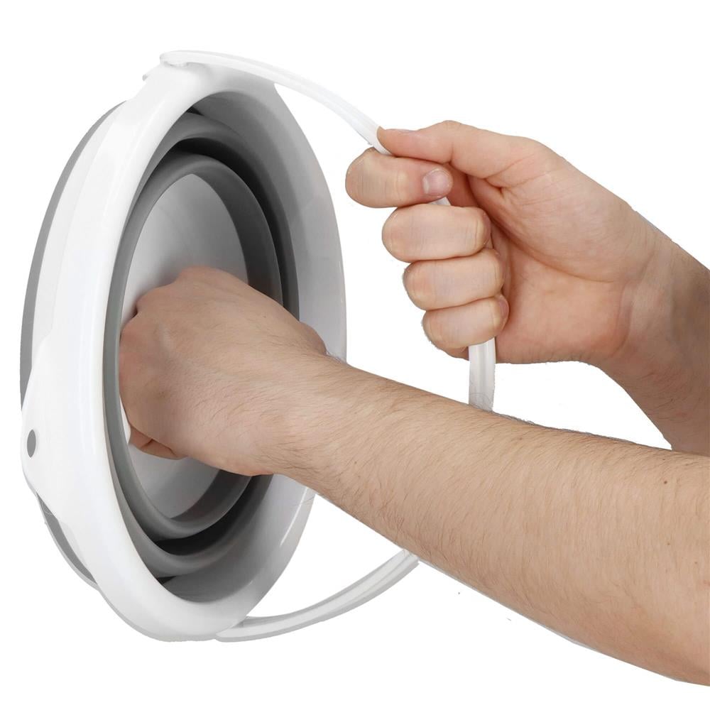 Material: plastic + silicon Culoare: gri/alb Capacitate: 5L Forma: rotunda Diametru total: 25 cm Inaltime cand este desfasurat: 18,5 cm Produsele din silicon au o gama larga de aplicatii. Structura acordeonului face depozitarea mult mai usoara. Sunt perfecte pentru camping si viata de zi cu zi. Consultati lista bogata de avantaje ale produselor noastre! Structura acordeonului Sistem foarte rapid de desfasurare si pliere Gama larga de aplicatii Ultra usor de transportat si depozitat Maner profilat in partea inferioara a galetii Fabricat din materiale solide si durabile Prevazut cu maner de agatat Maner confortabil de transport care se potriveste bine in mana Materialul siliconic si designul bine gandit ne-au permis sa realizam o structura asemanatoare acordeonului. Galeata este echipata cu un sistem rapid de pliere si desfasurare care va va lua doar cateva secunde. Cand este pliat, ocupa putin spatiu, astfel incat il puteti depozita aproape oriunde. Galeata in sine este un produs extrem de universal, dar produsul nostru se remarca pe piata datorita proprietatilor sale excelente. Galeata este fabricata din plastic rezistent si un strat gros de silicon, asa ca va va servi foarte mult timp. Dar asta nu este tot, le-am dotat cu detalii demne de remarcat precum: Maner profilat in partea inferioara - faciliteaza eliminarea lichidului din galeata Maner confortabil de transport Carlig pentru agatat - depozitati aproape oriunde