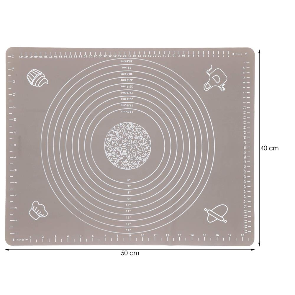 Culoare: Gri Dimensiune: 50 x 40 cm Latime: 50 cm Inaltime: 40 cm Material: silicon Rezistenta in intervalul de temperatura: 260 pana la -60ยฐC In plus: nu absoarbe mirosurile, ocupa foarte putin spatiu atunci cand este pliata Aceasta plansa din silicon este ideala pentru bucatarii.ย  Datorita flexibilitatii materialului, aceasta ocupa foarte putin spatiu atunci cand este rulata si poate fi depozitata chiar si intr-un sertar mic. Usor de curatat sub jet de apa Aluatul framantat manual nu se va lipi de silicon Nu necesita ungere Nu absoarbe mirosurile Are gradatii pentru lungime si diametru Nu se va deforma atunci cand este pliat in rulou Poate rezista la temperaturi cuprinse intre 260ยฐC si -60ยฐC, astfel incat puteti pune pe el oale calde Materialul nu se va deteriora atunci cand se decupeaza, de exemplu, prajituri de turta dulce Economiseste timp si spatiu Este antiderapant si nu va aluneca atunci cand framantati aluatul Orice bucatar de casa stie exact cum este sa framanti aluatul care se tot lipeste de blatul de lemn al mesei. Alegand accesoriul nostru din silicon, veti putea face aluat, galuste sau pizza fara niciun stres suplimentar. Cu cei mai mici membri ai familiei, puteti decupa cu usurinta diferite modele pentru turta dulce sau prajituri, iar acestea se vor desprinde de pe covoras fara probleme. Covorasul este fabricat din materiale de cea mai buna calitate. Alegand siliconul, se garanteaza ca nu va absorbi mirosurile sau umezeala din lichidele adaugate pentru prajituri. In plus, acest material este sigur pentru sanatate si neutru din punct de vedere alimentar. Adesea, retetele din cartile de bucate sau de pe bloguri au dimensiuni specifice ale prajiturilor care trebuie facute. Din acest motiv, plansa de patiserie din silicon este dotata cu gradatii de lungime si diametru. De asemenea, merita mentionat faptul ca acestea nu sunt convexe, deci nu se vor vedea pe aluat. Planuiti o excursie cu cortul, iar gatitul este un hobby si intentionati sa va aratati abilitatile in vacanta? Nici o problema! Puteti lua placa de patiserie din silicon cu dvs. pur si simplu rulati-o, astfel incat sa incapa in orice bagaj.