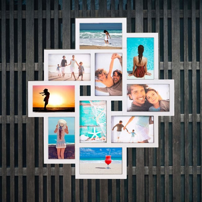 Rama foto de perete, colaj de 10 fotografii, 48x53cm, alb