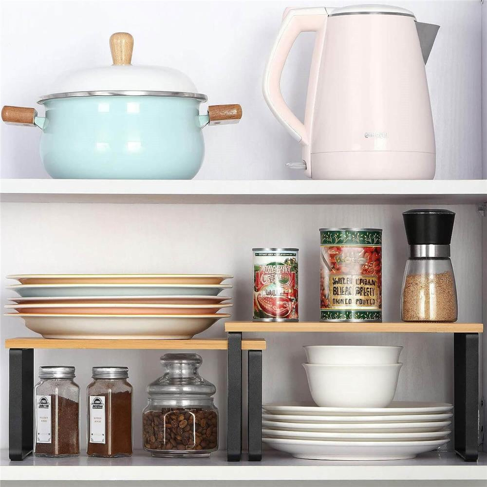 Set 2 rafturi de bucatarie suprapozabile, pentru ustensile sau condimente, 20x34x16cm, natur si negru