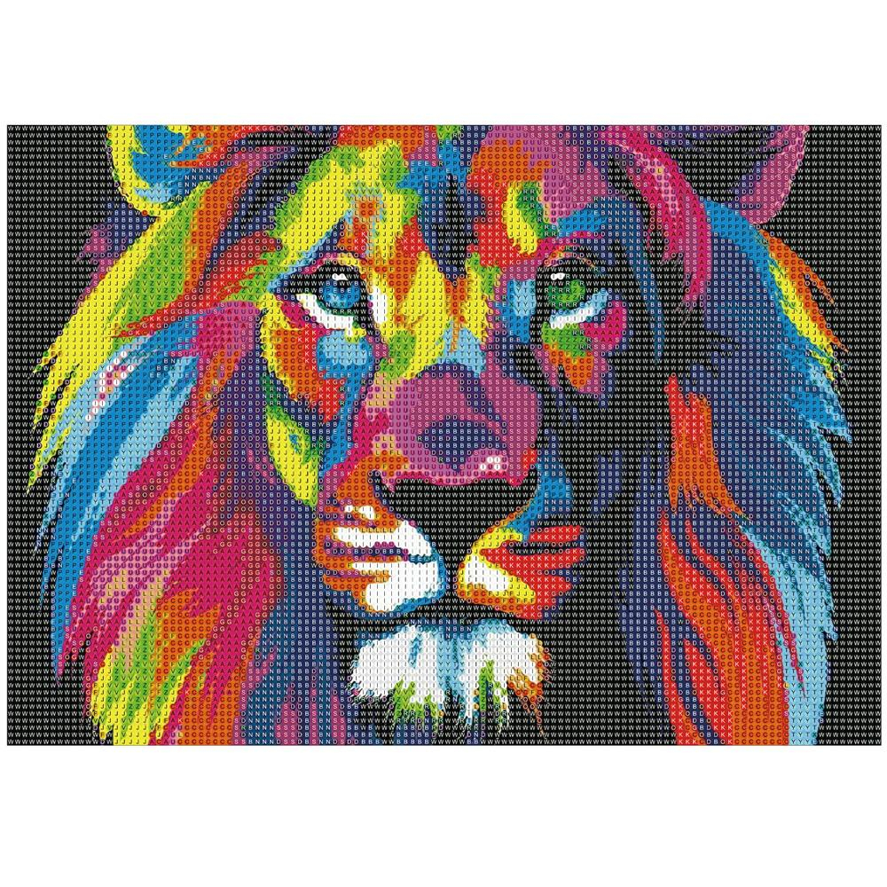 Dimensiuni: 30x40 cm Material: acrilic Culoare: multicolor Model: leu Setul include: Panza puternica cu imagine imprimata Aplicator roz pentru prinderea si lipirea diamantelor Tava verde...