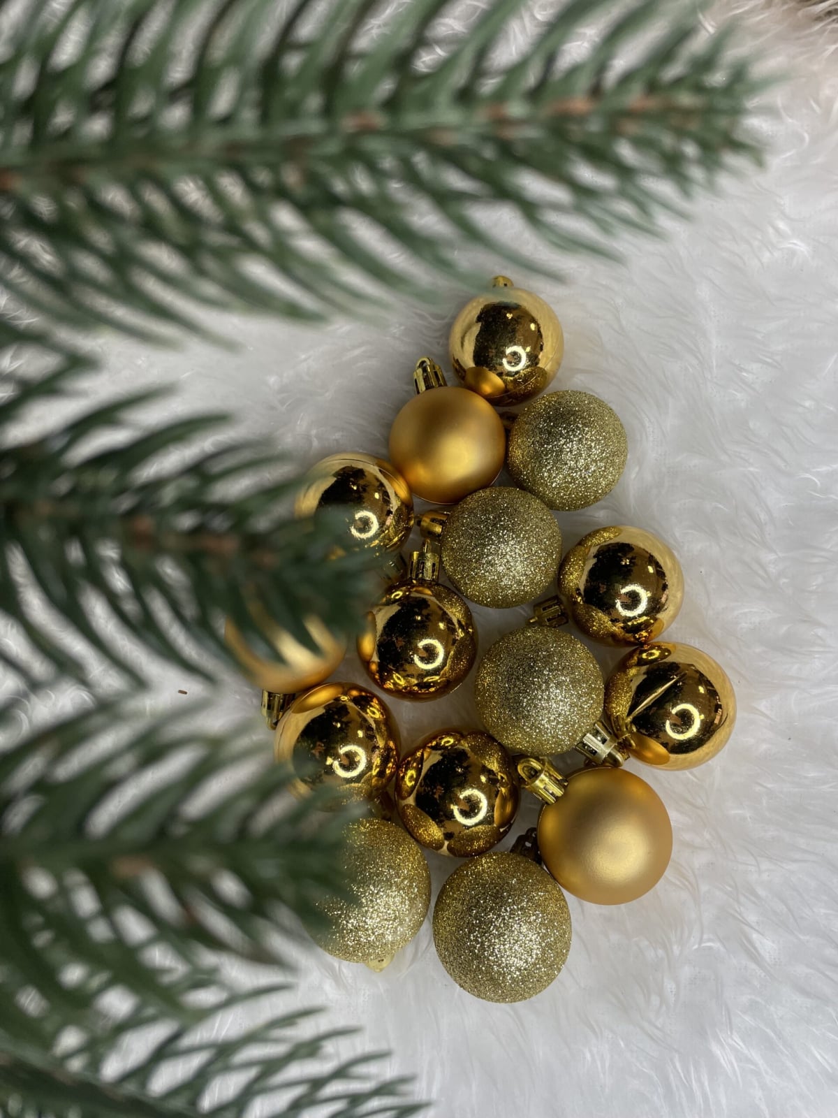 Culoare: auriu Material: plastic Cantitate: 20 bucati de globulete Dimensiune: 4 cm Modele: mat, sclipici, stralucitor Incasabil, snururi aurii pentru agatat Craciunul, ca si intreaga perioada de iarna, este o perioada magica, plina de caldura si de o atmosfera unica, creata datorita unui spectacol de decoratiuni fabuloase si constelatii luminoase incantatoare. Designul din plastic creste siguranta datorita materialului incasabil. Alegerea lor in locul globurilor de sticla va contribui la siguranta celor mici din casa. Globuletele pentru bradul de Craciun arata la fel ca cele din sticla. Datorita suprafetei lor netede ca o oglinda si a finisajului cu sclipici, acestea reflecta lumina in mod fantastic, sporind efectul de decoratiuni sclipitoare si stralucitoare, care aduc in minte asocieri cu un peisaj de iarna rece si inzapezit. Incasabil - sigur pentru casele cu copii si animale de companie Culori la moda - ideale atat pentru decoruri traditionale, cat si moderne Impachetate estetic - pur si simplu le infasurati cu panglica si sunt gata de a fi oferite cadou Vin cu snururi decorative - nu trebuie sa va faceti griji cu privire la problemele de agatare Globuletele pentru bradul de Craciun va vor permite sa va decorati casa de Craciun intr-un mod nelimitat. Puteti crea din ele:  Aranjamente unice pentru bradul de Craciun  Aranjamente de masa si de pervaz  Decoratiuni pentru usi si ornamente pentru rame de usa  Cadouri practice de Craciun pentru cei dragi  Impachetari unice pentru cadouri - folositi mai multe in loc de funda