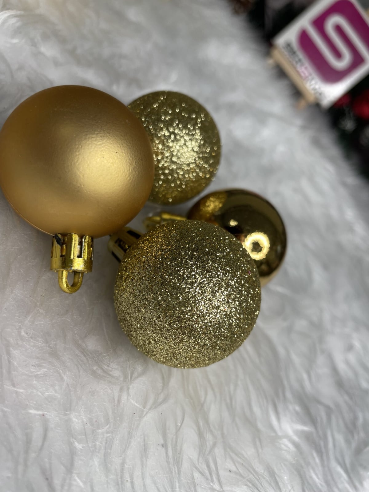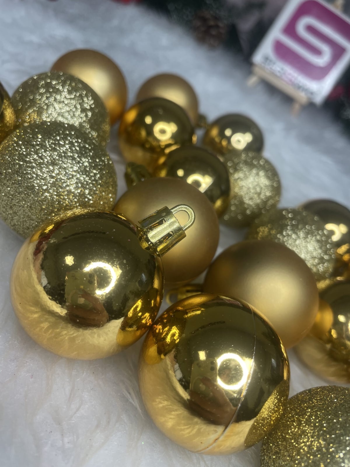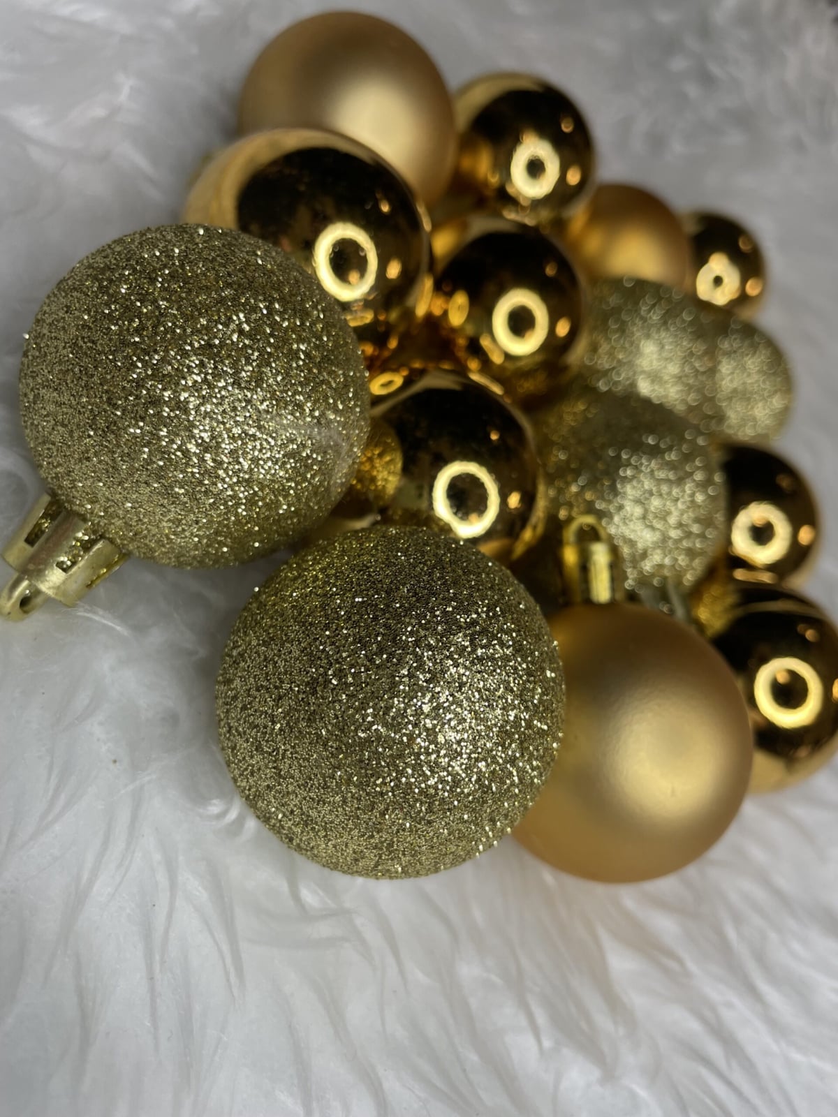 Culoare: auriu Material: plastic Cantitate: 20 bucati de globulete Dimensiune: 4 cm Modele: mat, sclipici, stralucitor Incasabil, snururi aurii pentru agatat Craciunul, ca si intreaga...