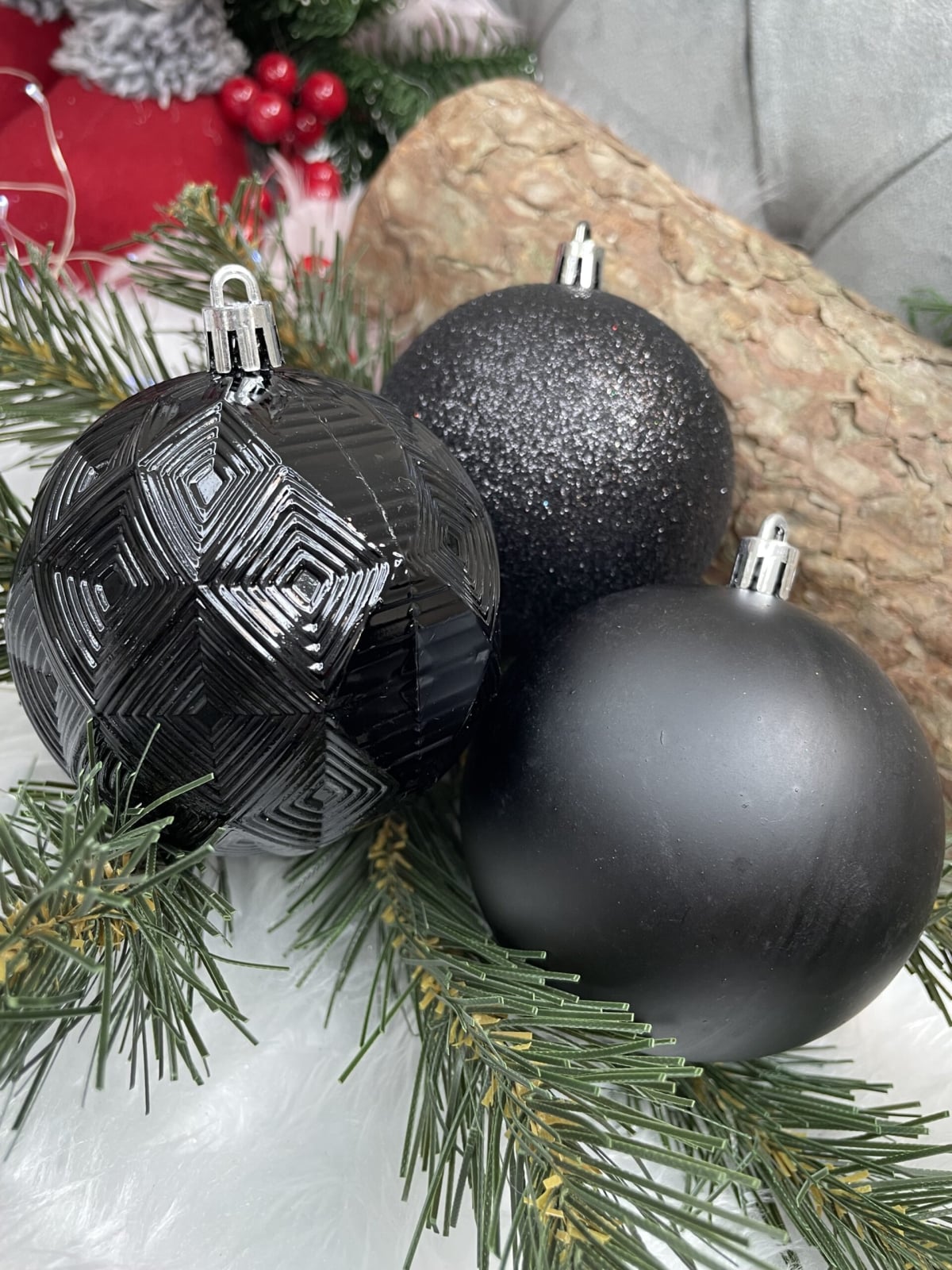 Set globuri de Craciun, 30 bucati, 8cm, 6 modele, negru