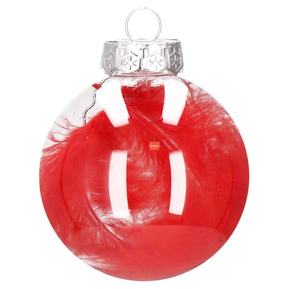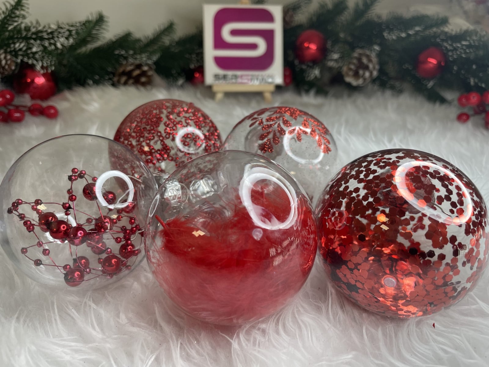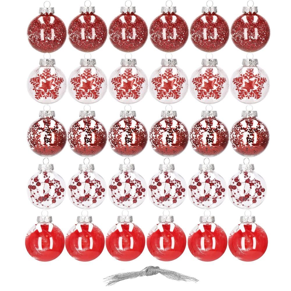 Set globuri de Craciun Inedit, 30 bucati, 7cm, transparente si rosu