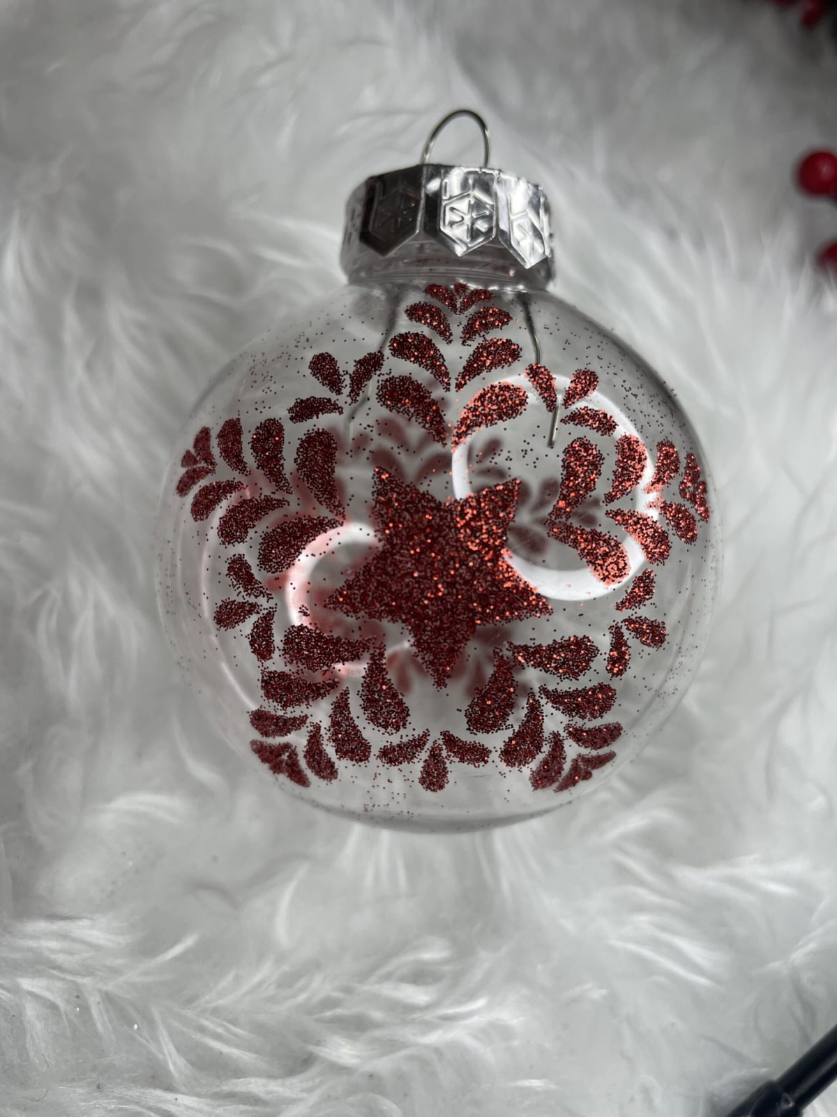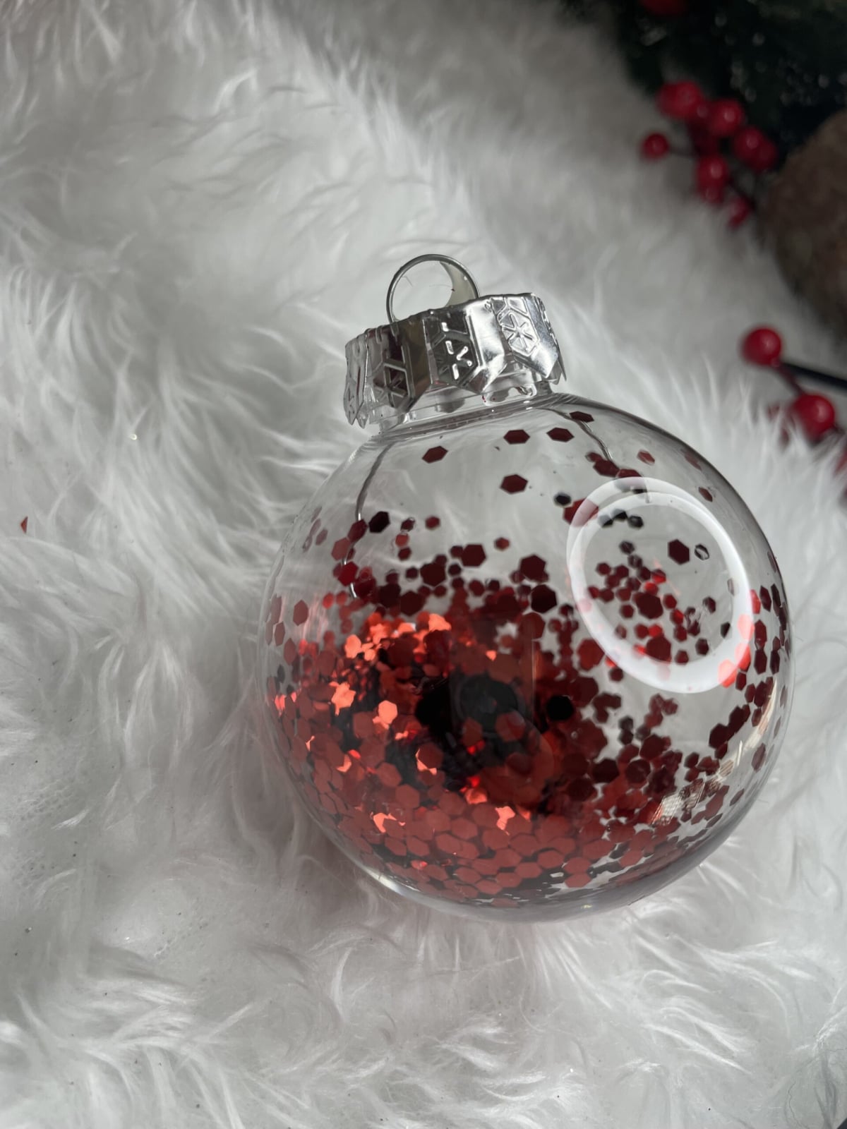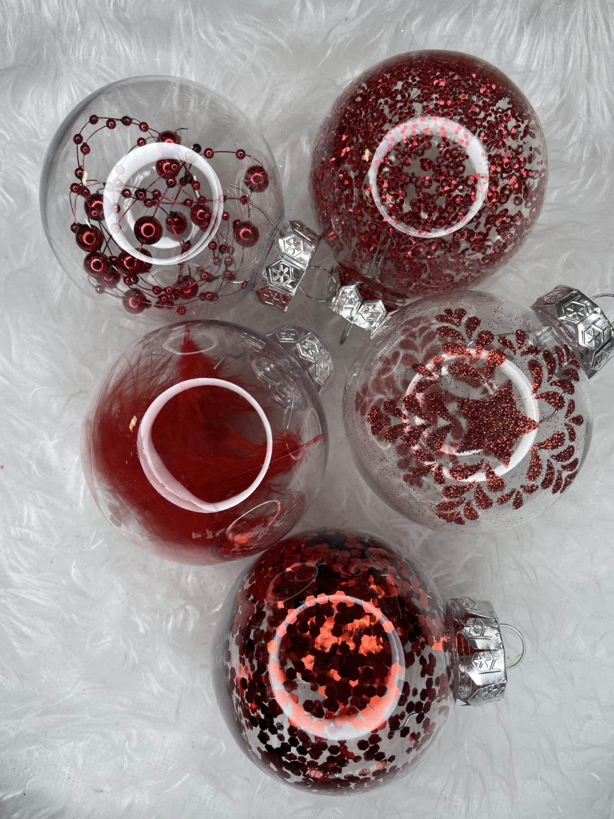 Set globuri de Craciun Inedit, 30 bucati, 7cm, transparente si rosu