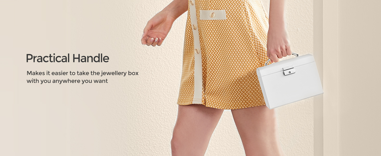 Culoare: Alb clasic Material: MDF (placi de fibre de densitate medie), PU (poliuretan), captuseala din catifea Stil: Modern Caracteristica speciala: oglinda, lacat, portabil Dimensiunile produsului:...