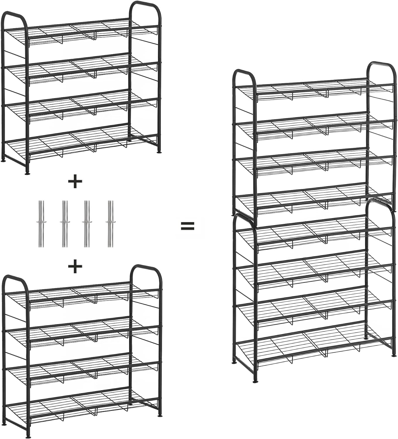 SONGMICS Pantofar cu 4 rafturi de depozitare, din metal, polite cu unghi reglabil, 28x69x65cm, negru