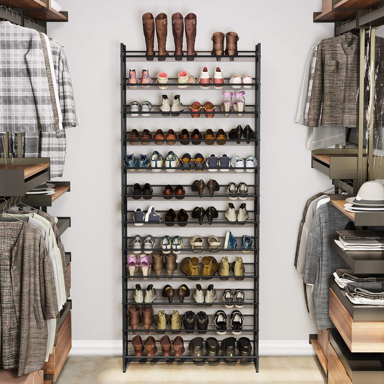 SONGMICS Raft pentru pantofi suprapozabil, pe 12 nivele, din metal, cu rafturi reglabile, pentru 48-60 perechi, 31x 93x223cm, negru