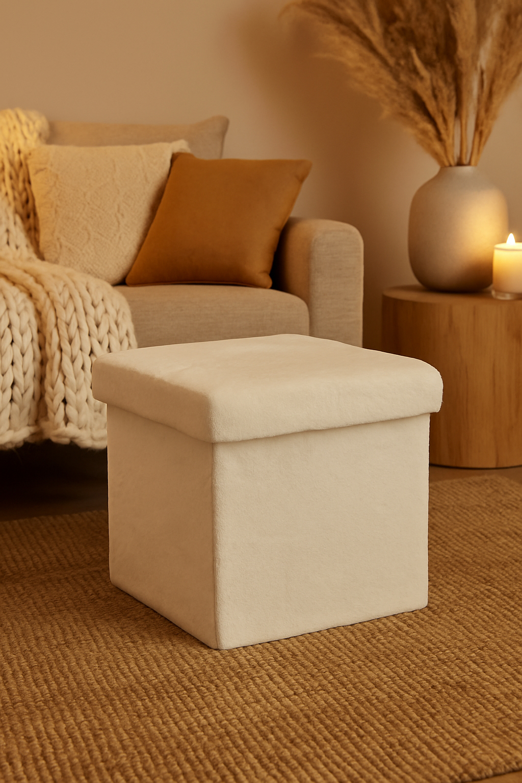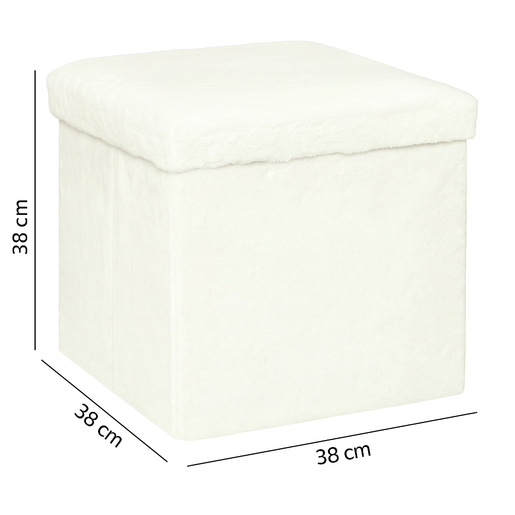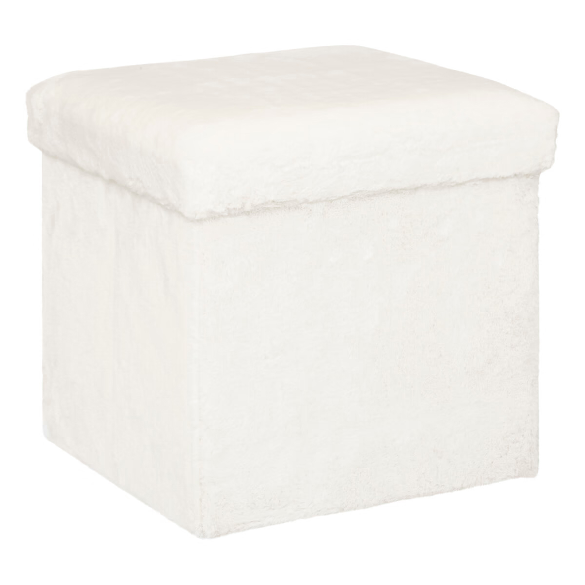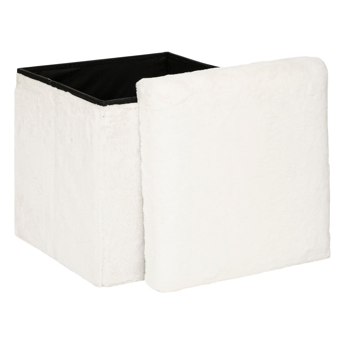 Taburet pliabil Atmosphera Ezzio cu spatiu depozitare, 38x38x38 cm, blana artificiala, alb