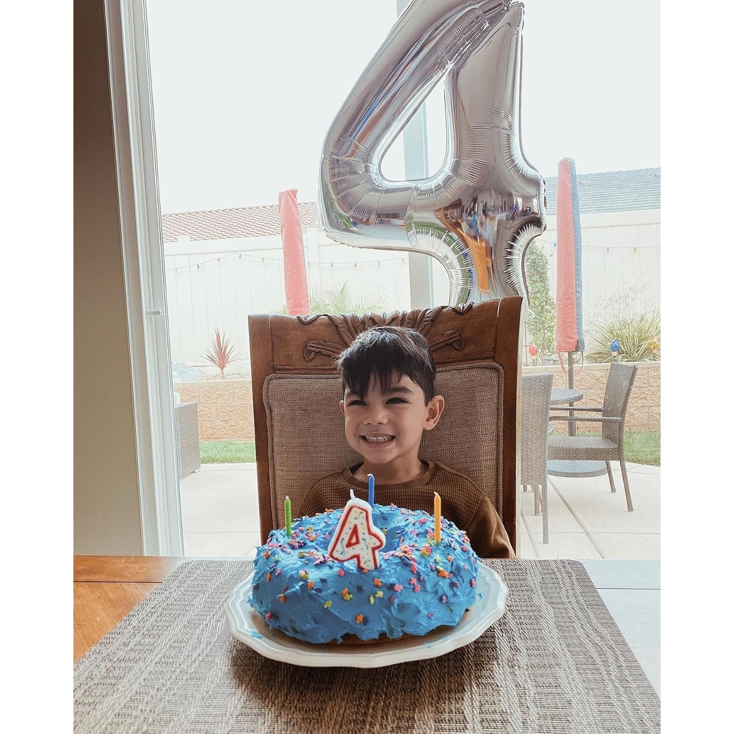 Balon din Folie Metalizata, , Figurina Cifra, Tema Aniversare 100 cm, Ambalaj Individual, Pai inclus, Umflare cu Aer sau Heliu, Argintiu, Cifra 4