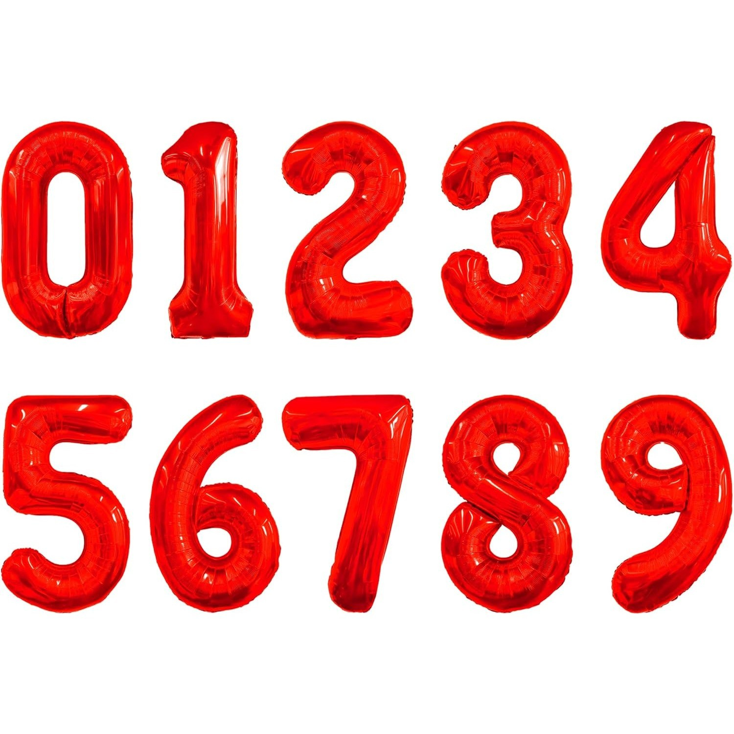 Balon din Folie Metalizata , Figurina Cifra, Tema Aniversare 40 cm, Ambalaj Individual, Pai inclus, Umflare cu Aer sau Heliu, Rosu, Cifra 0