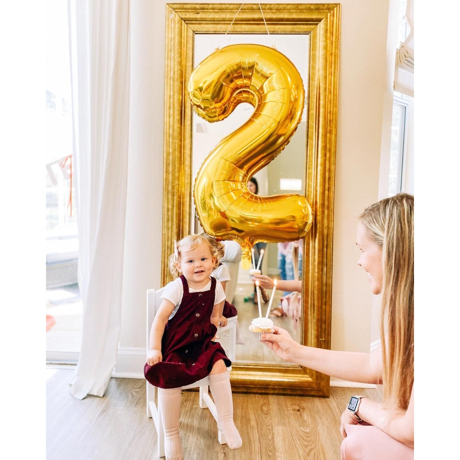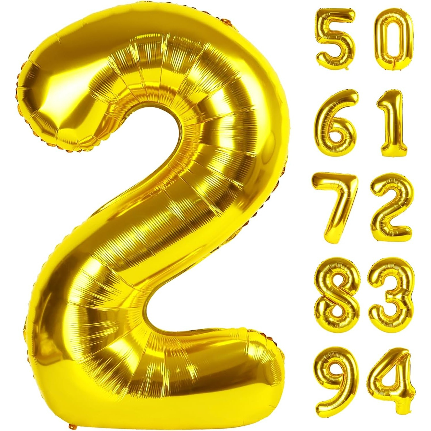 Balon din Folie Metalizata , Figurina Cifra, Tema Aniversare 80 cm, Ambalaj Individual, Pai inclus, Umflare cu Aer sau Heliu, Auriu, Cifra 2