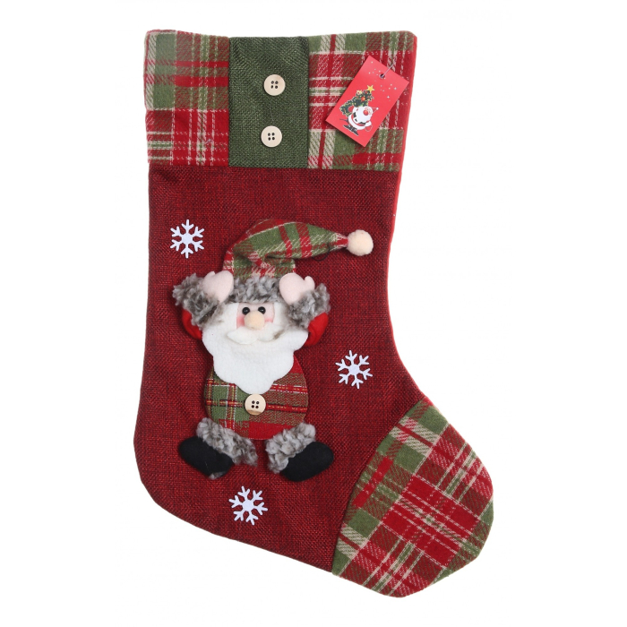 Ciorap Cadouri,,cu model Mos Craciun,rosu, marimea 20x30 cm, textil, interior
