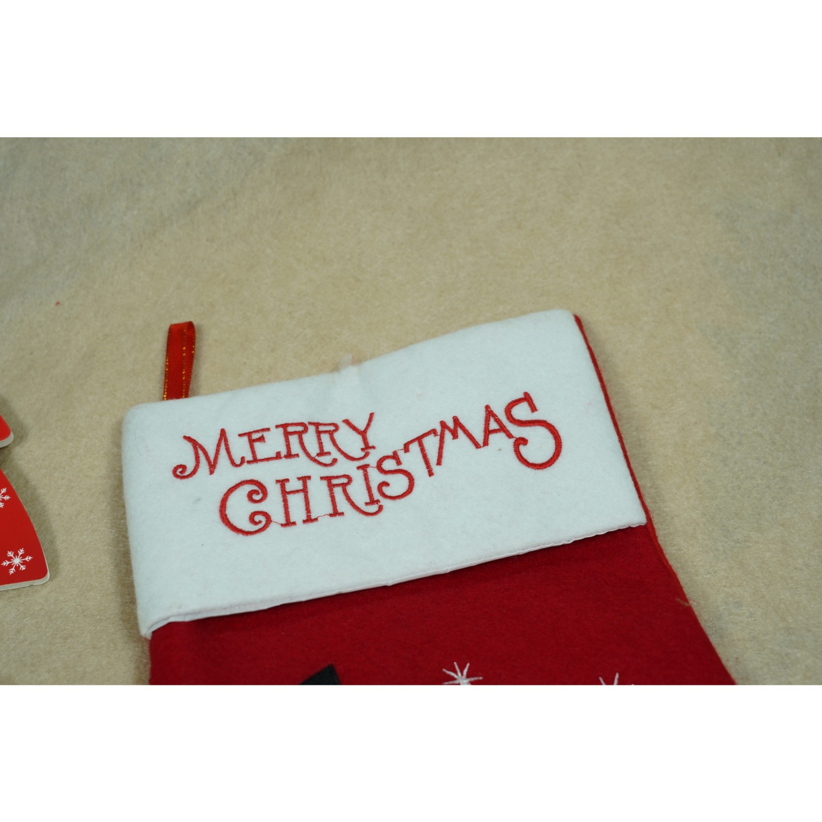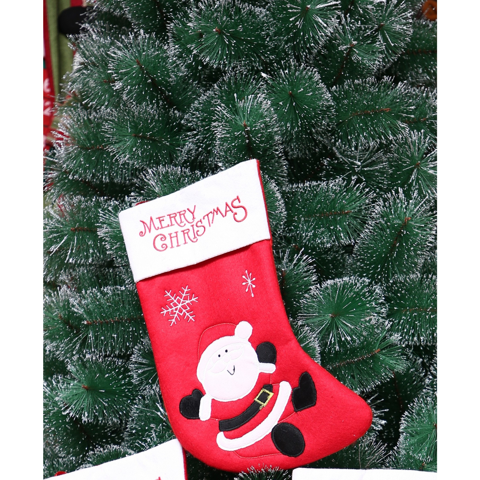 Ciorap Cadouri, ,cu model Mos Craciun, rosu, marimea 20x40 cm, textil, interior