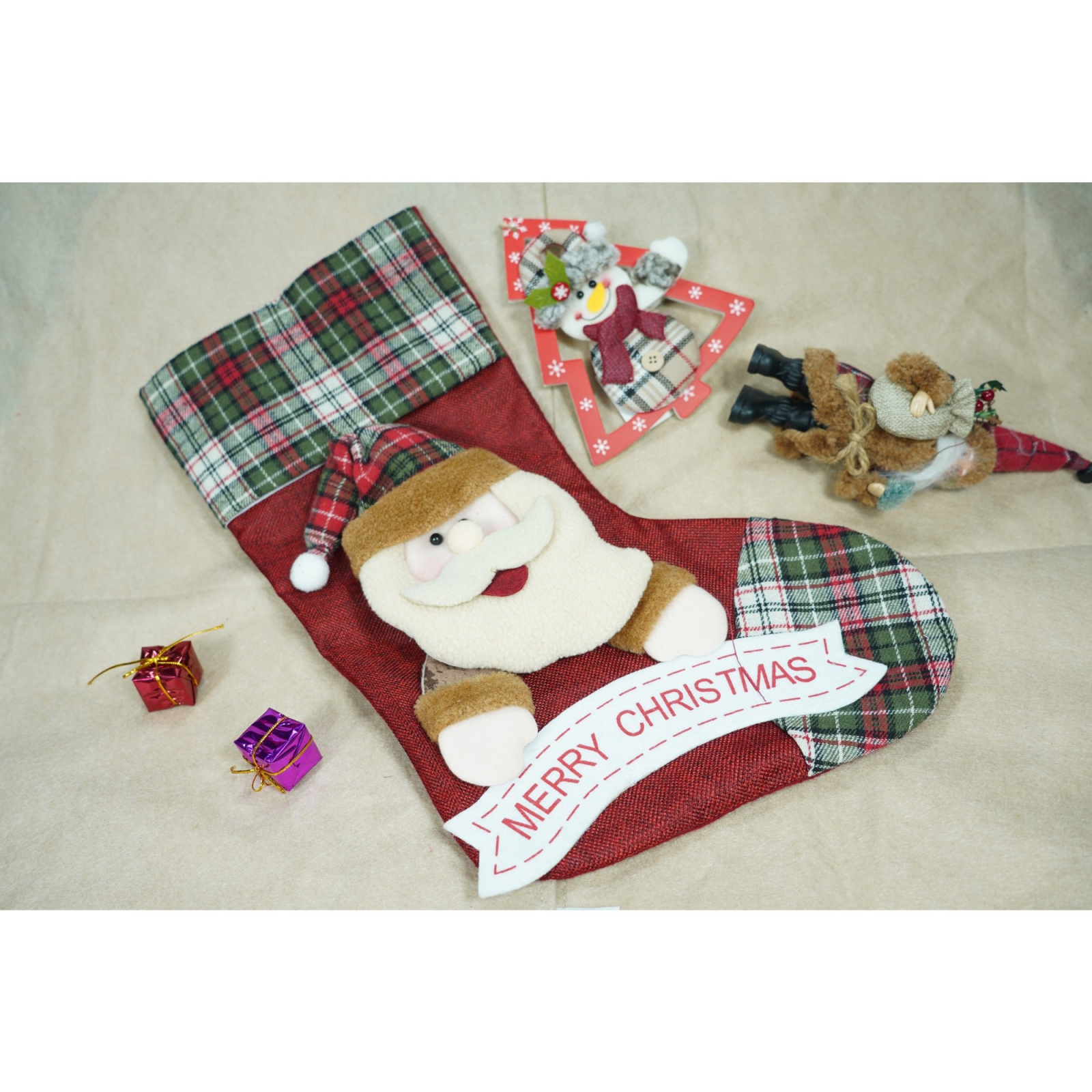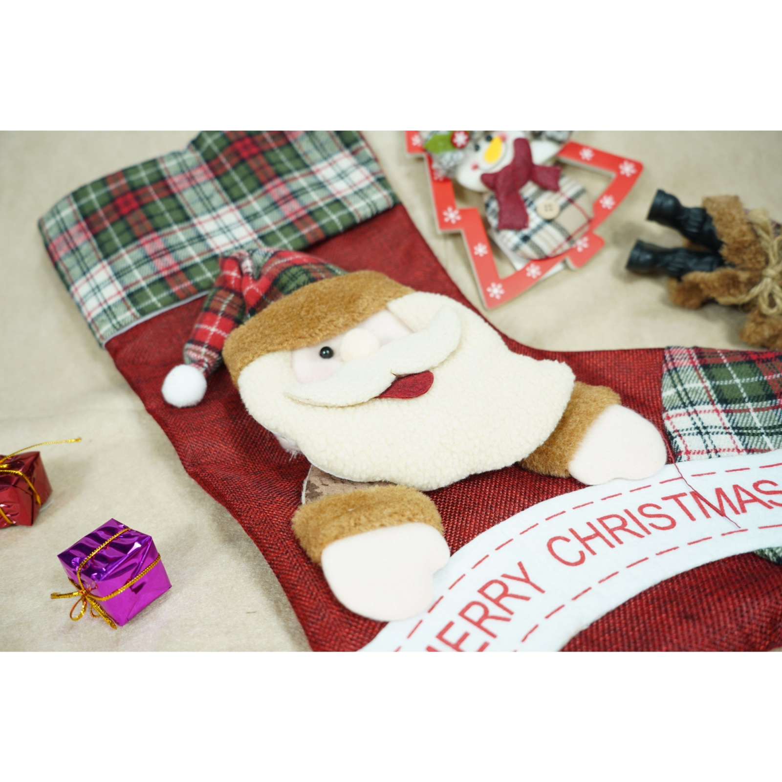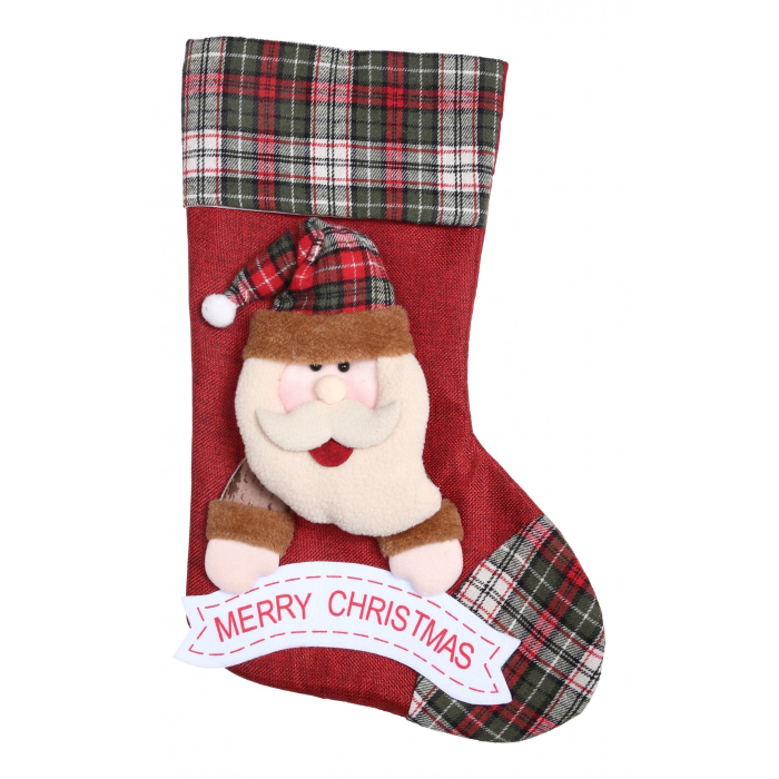 Ciorap Cadouri, ,cu model Mos Craciun,rosu, marimea 23x45 cm, textil, interior