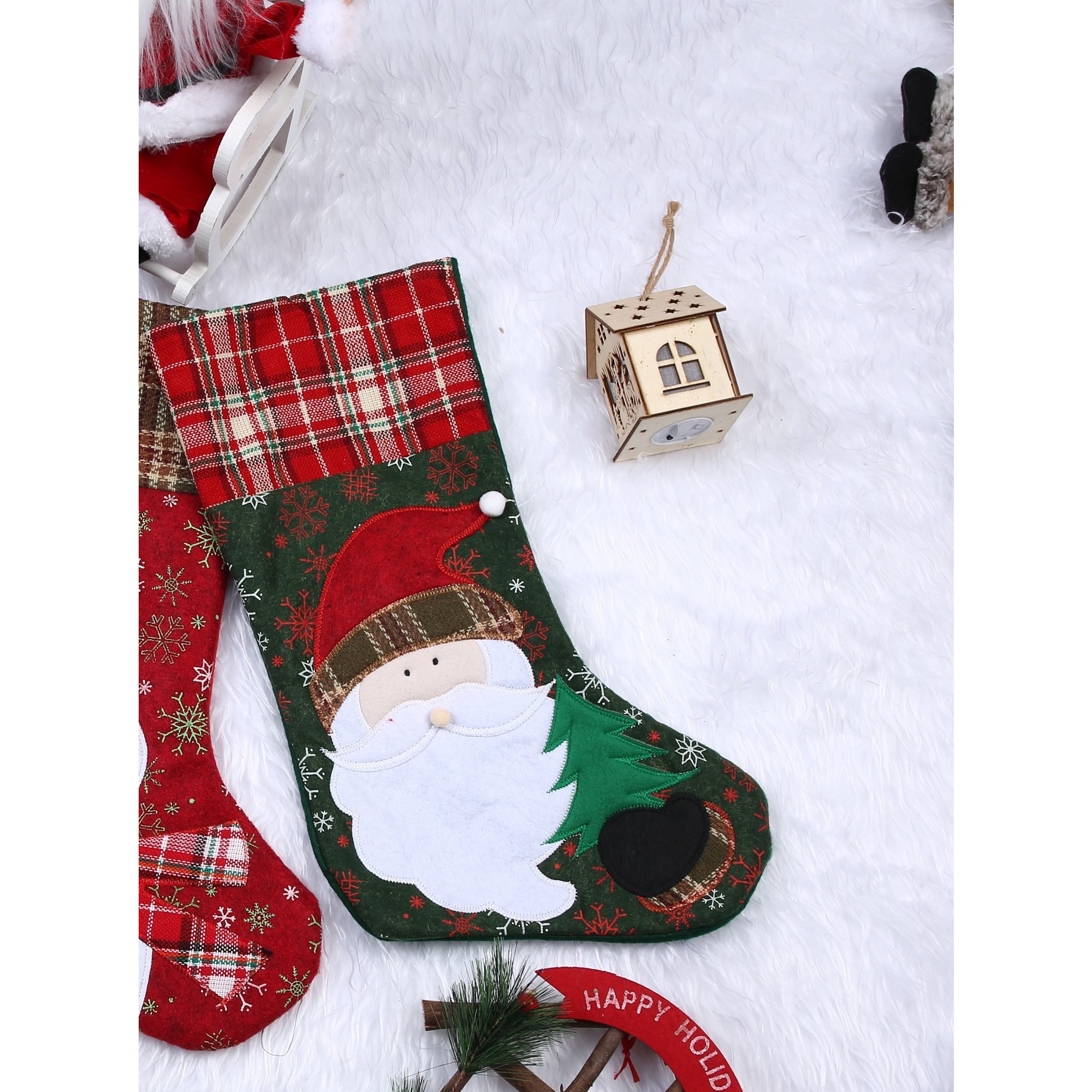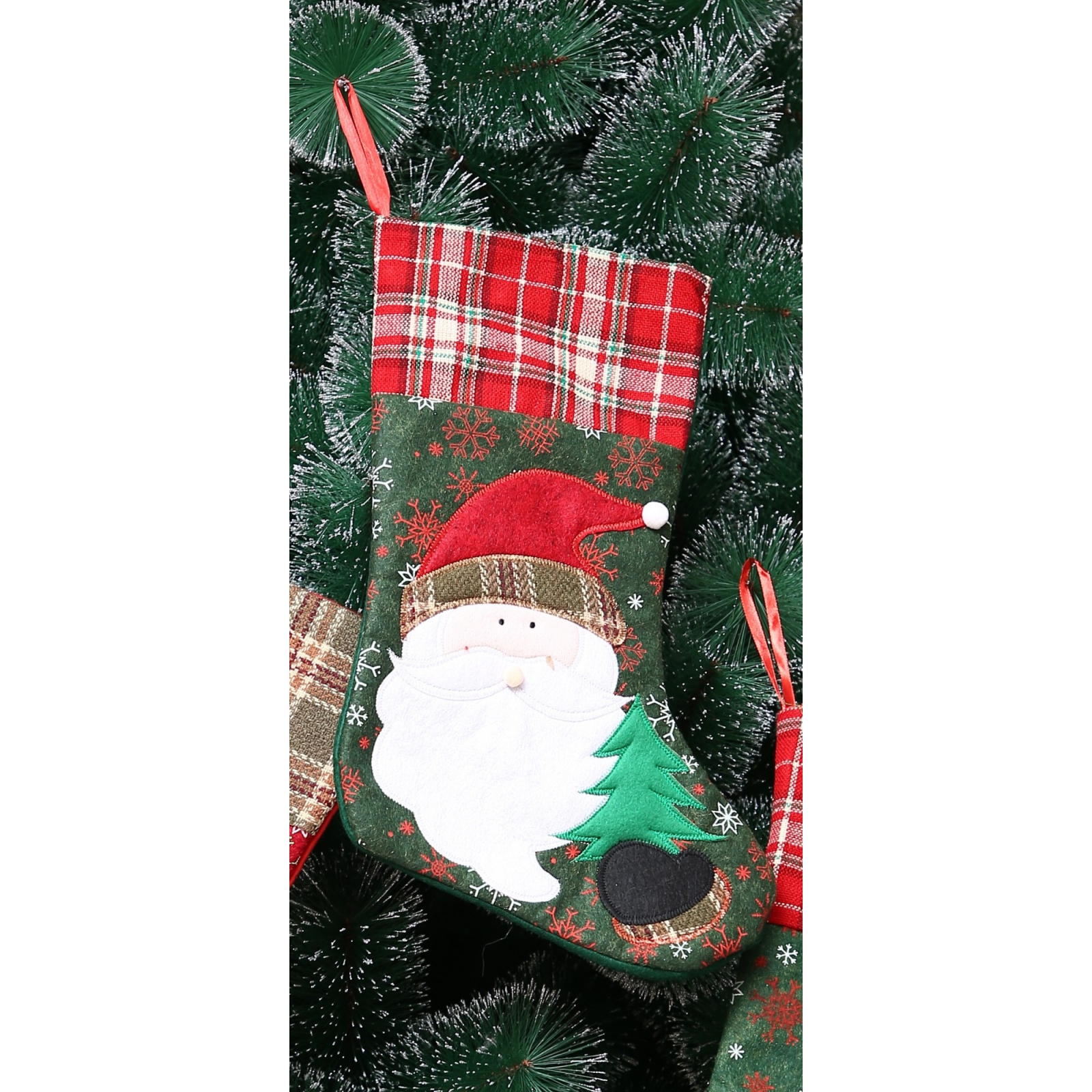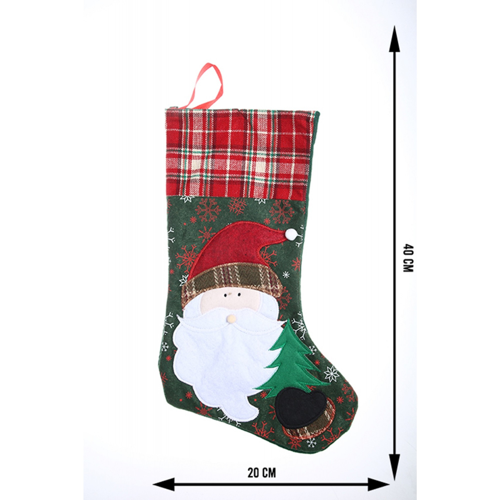 Ciorap Cadouri, ,cu model Mos Craciun,verde, marimea 20x40 cm, textil, interior