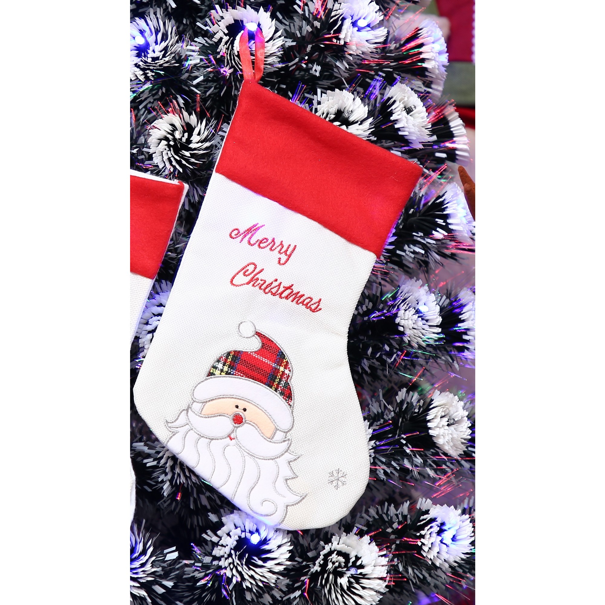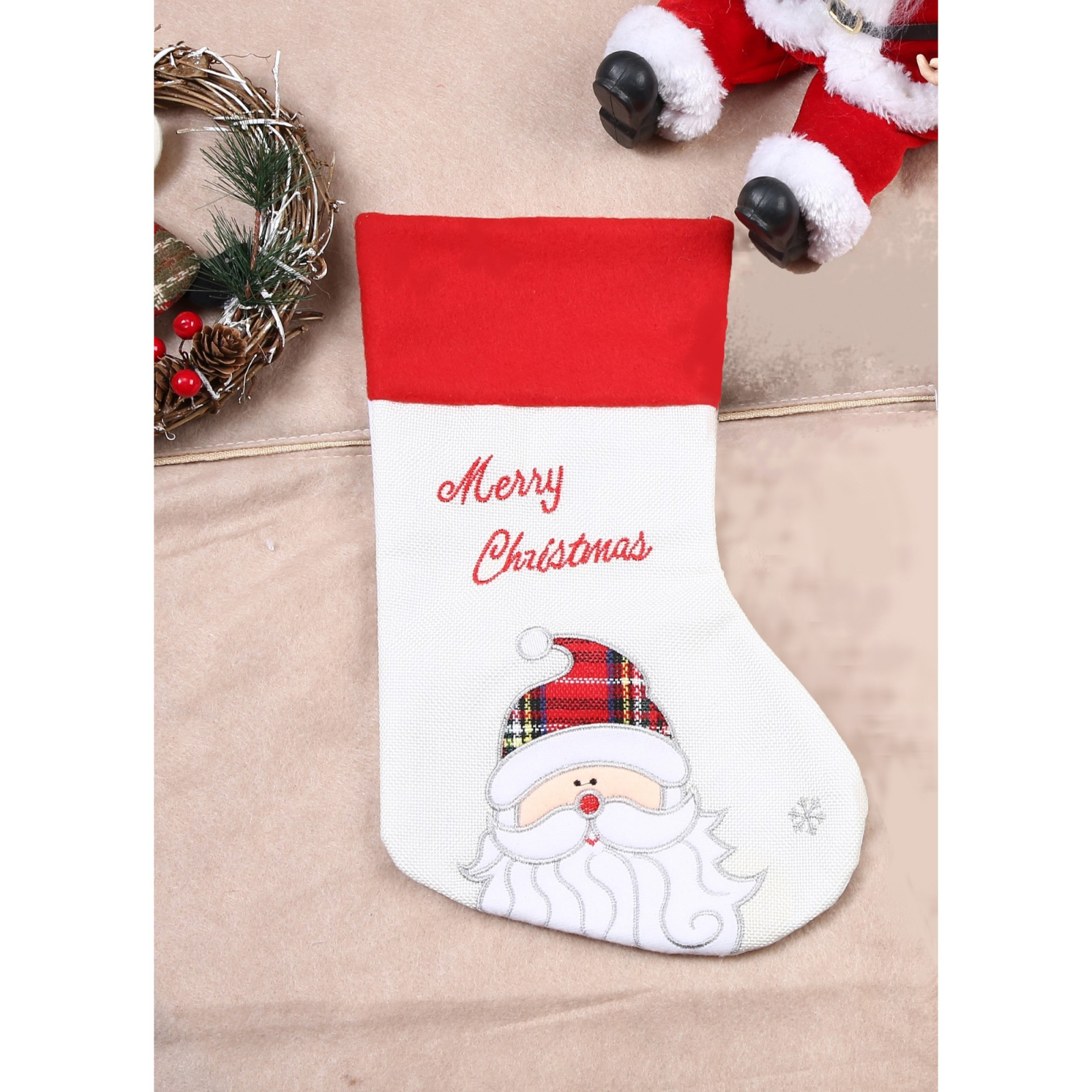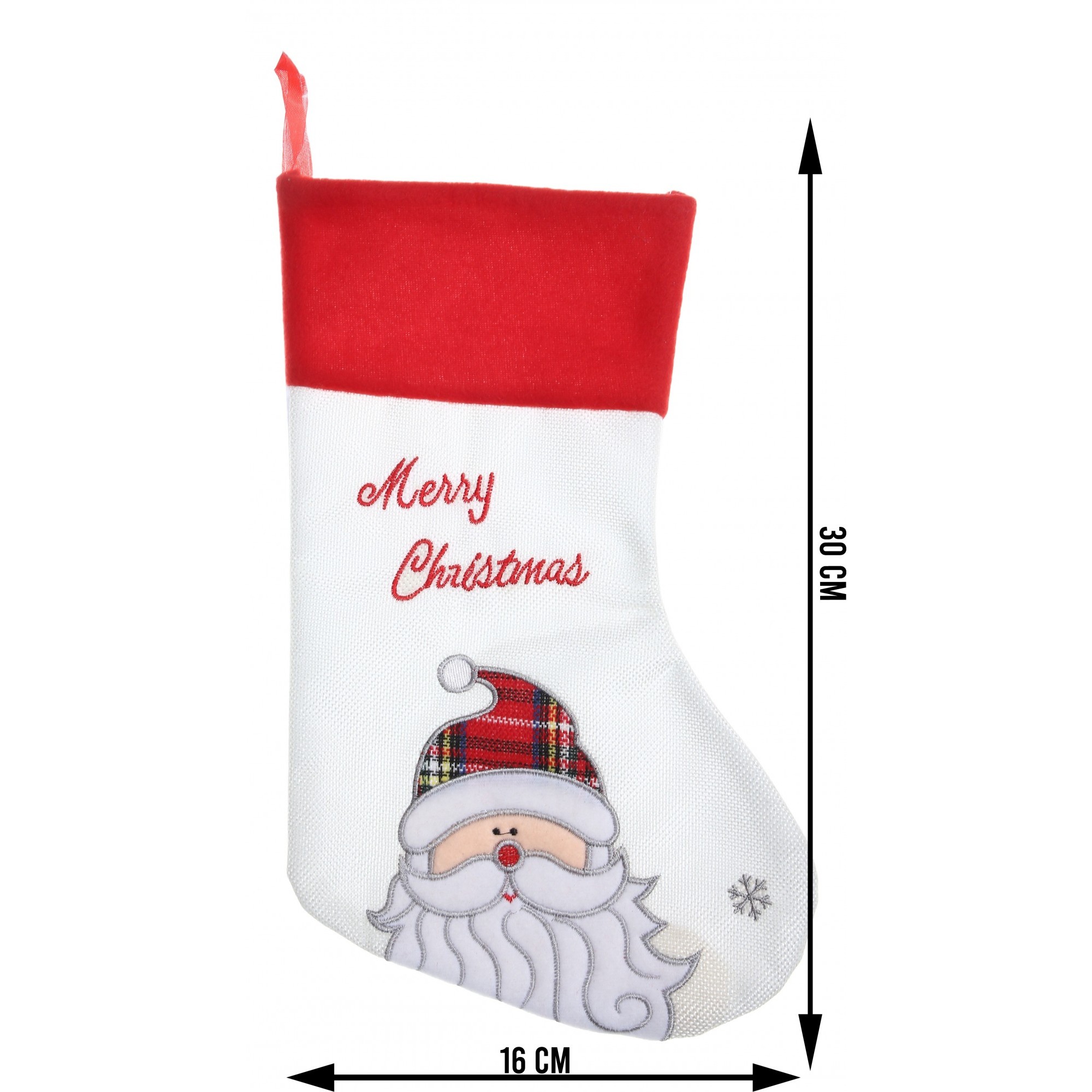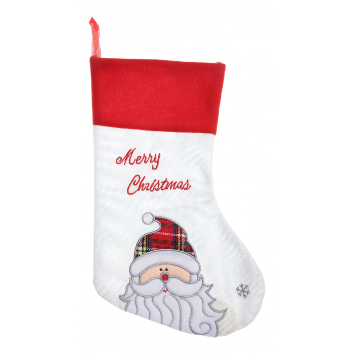 Ciorap Cadouri, culoare alba, imprimeu Mos Craciun, marimea 16x30 cm,