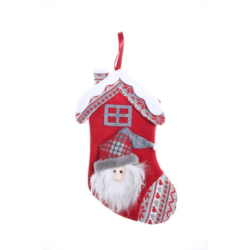 Ciorap Cadouri, model casa, culoare rosie, imprimeu Mos Craciun, marimea 15x30 cm,