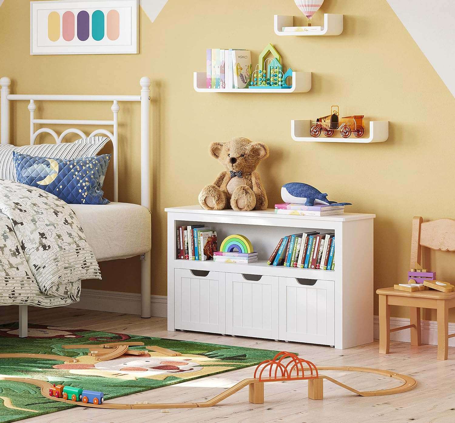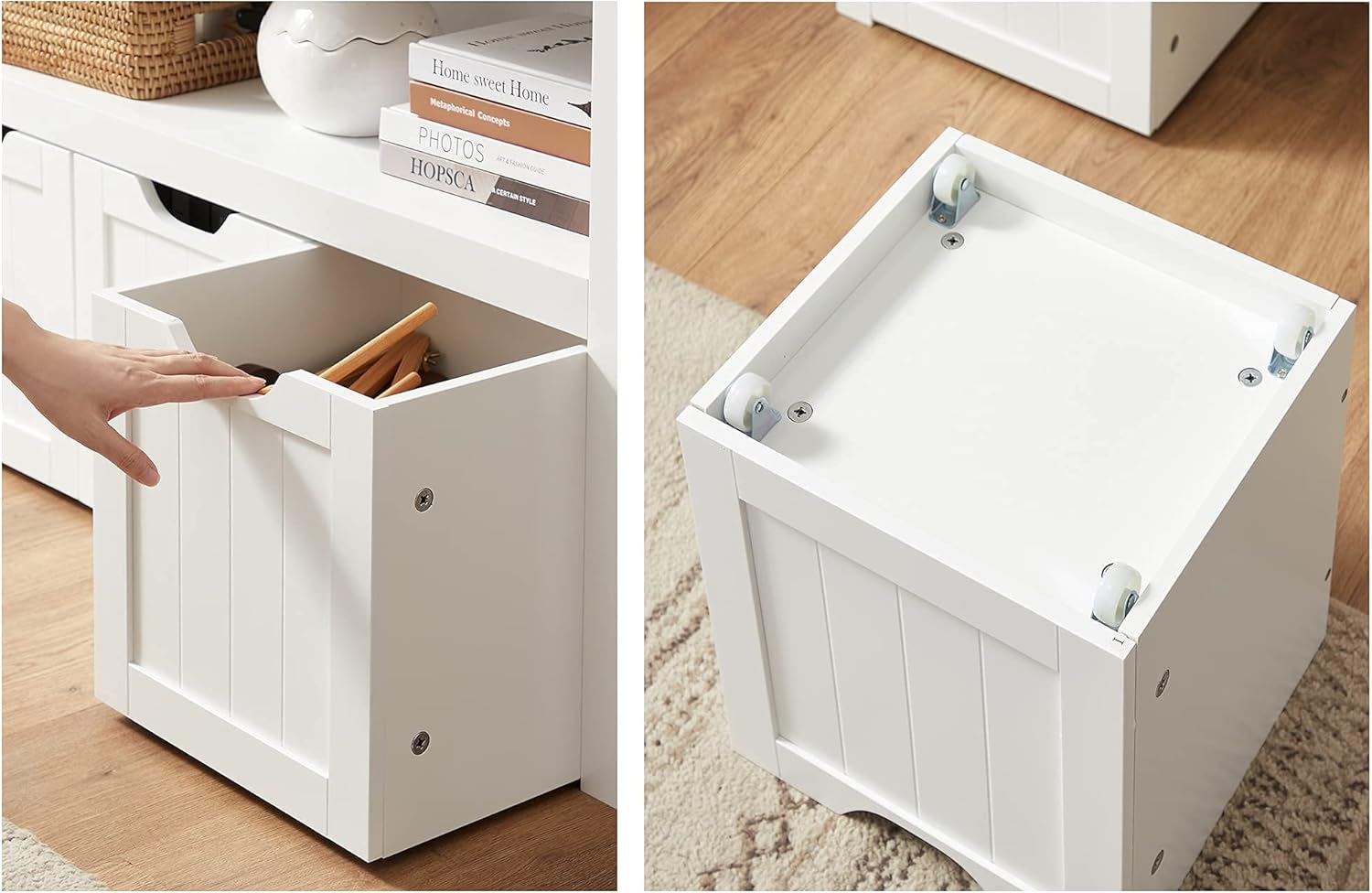 VASAGLE Comoda cu spatiu depozitare jucarii, 3 dulapuri mobile, 102x30x60 cm, alb