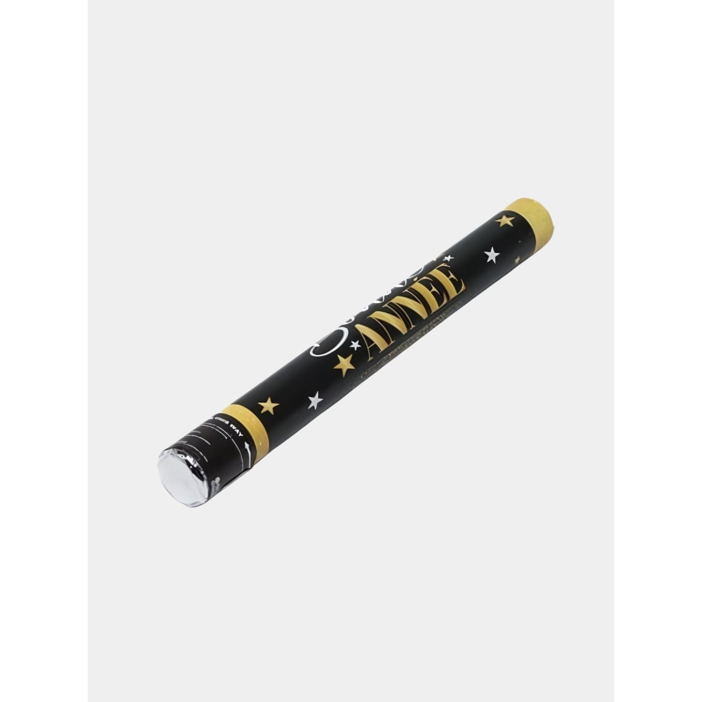 Sărbătorește intrarea în noul an cu stil! Tubul de Confetti – Bonne Année de 60 cm este accesoriul perfect pentru petrecerile de Revelion, adăugând un efect vizual spectaculos cu confetti în formă de steluțe aurii și argintii.