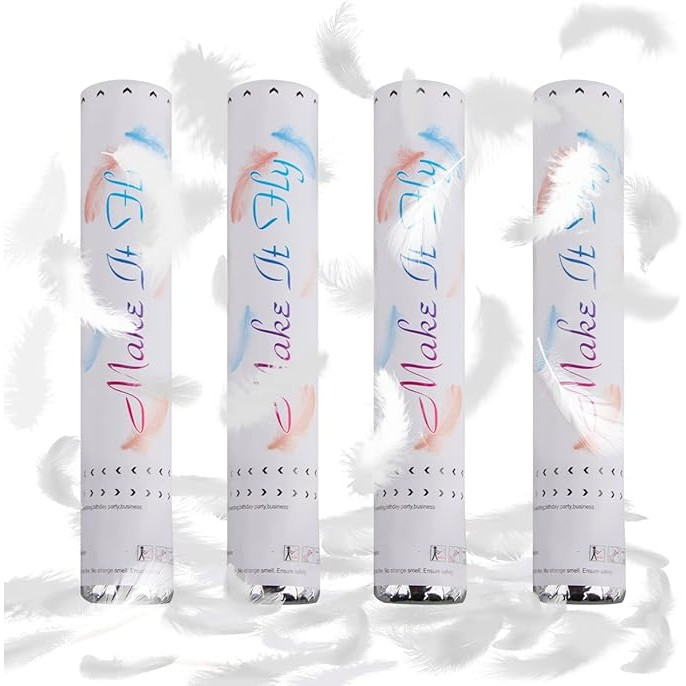 Tubul de confetti cu pene albe este alegerea perfectă pentru a aduce un strop de magie și eleganță evenimentelor tale. Cu un design ușor de folosit și un efect spectaculos, acesta va transforma orice ocazie într-un moment memorabil.