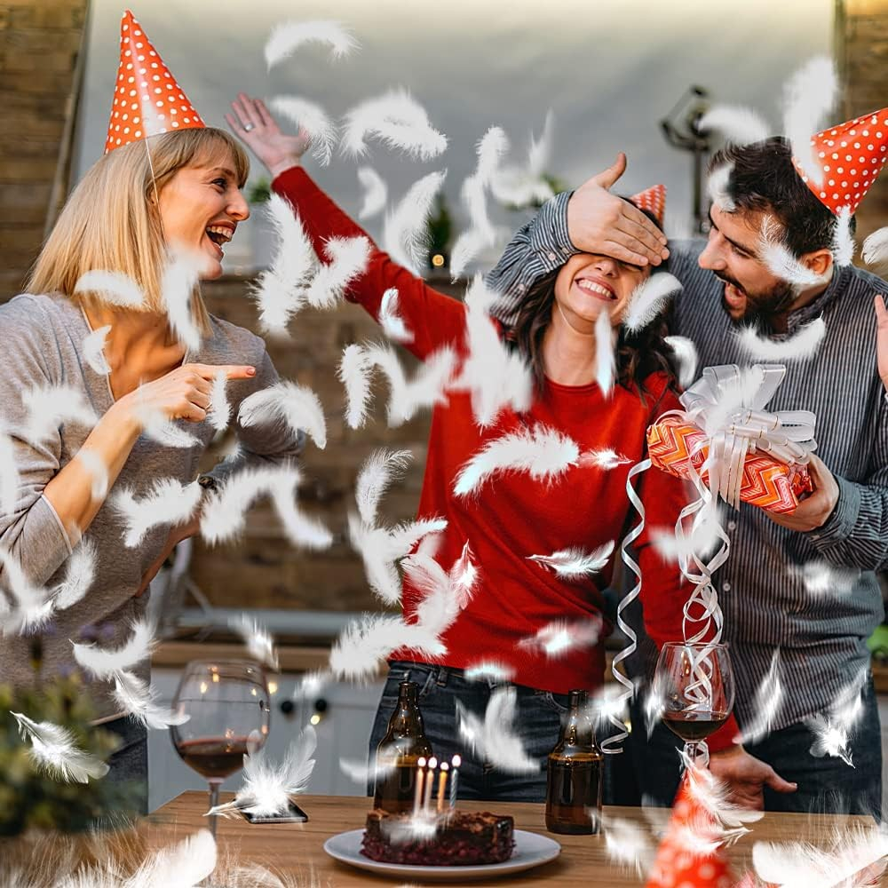 Tubul de confetti cu model de pene este ideal pentru evenimente speciale, cum ar fi nunți, aniversări, petreceri și alte sărbători. Acesta eliberează pene albe delicate, adăugând un efect spectaculos și elegant oricărui eveniment. Perfect pentru a crea momente memorabile și a aduce o notă de rafinament decorului.