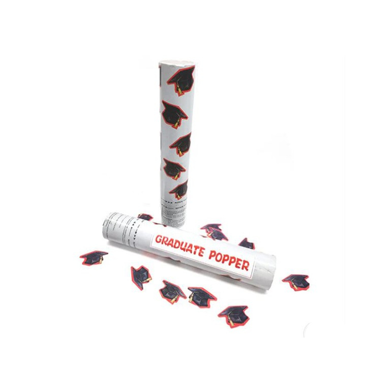 Tunul de confetti este alegerea perfectă pentru momentele festive de absolvire. Echipat cu un mecanism de eliberare prin răsucire, acesta lansează confetti cu model de pălării de absolvire, aducând un plus de culoare și bucurie oricărei ceremonii sau petreceri tematice.