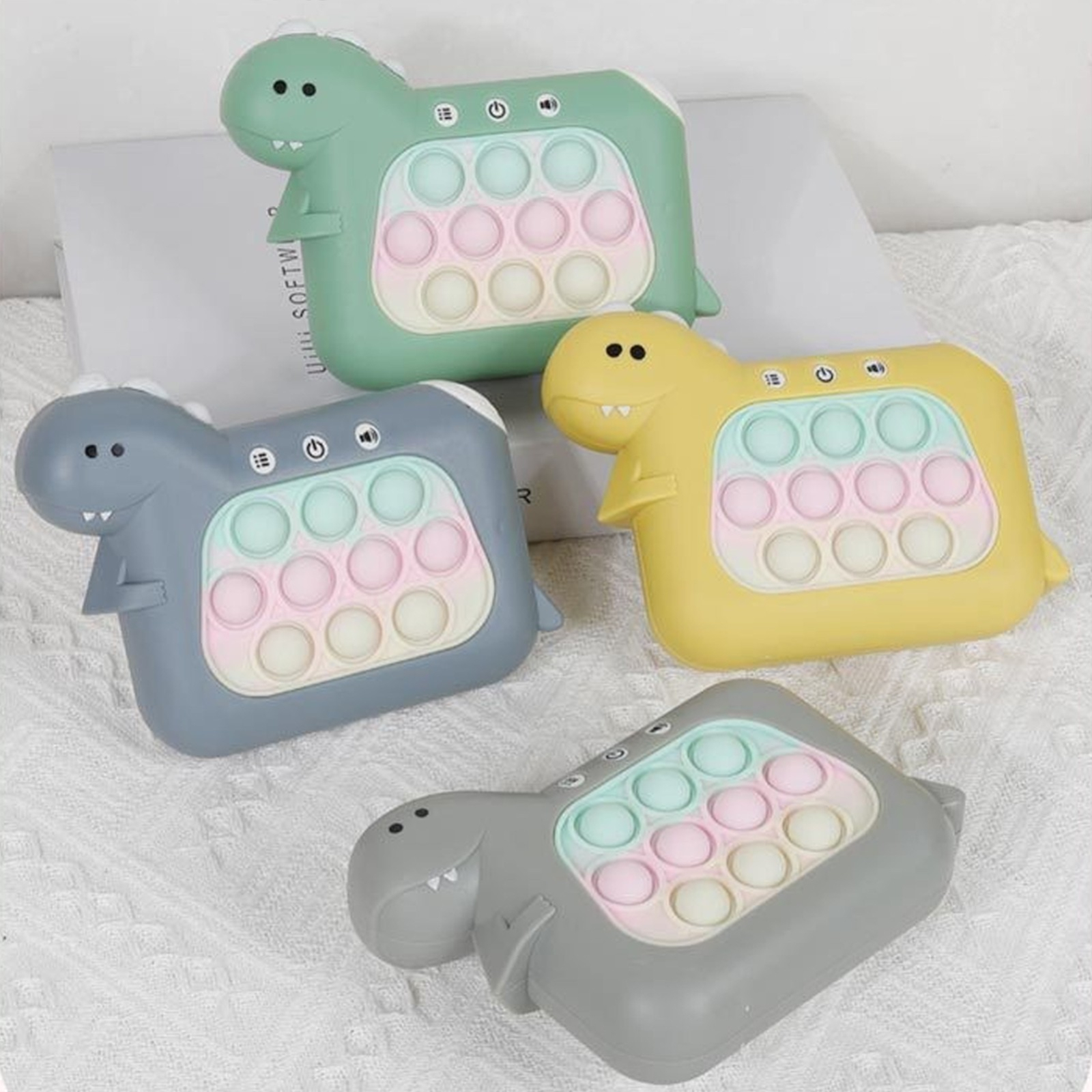 Descoperă jucăria interactivă Pop It Whack A Mole , model Dinozaur, ce oferă 4 moduri de joc și funcții multiple, cum ar fi flash-ul și muzica, pentru a aduce distracția în viața micuților! Fabricată din ABS și silicon, această jucărie este ideală pentru copiii cu vârsta de peste 3 ani, contribuind la dezvoltarea abilităților practice și a coordonării mână-ochi. Distracție și stimulare senzorială garantată într-un singur produs compact și ușor de utilizat!
