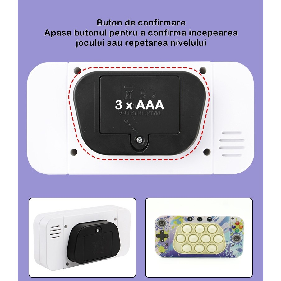 Jucarie interactiva tip consola pentru copii , speed push whack-a-mole, joc de viteza pop it, material ABS/silicon, cu nivele, sunete si lumini, 15.5 x 7.6 x 5.3 cm, model culori, multicolor
