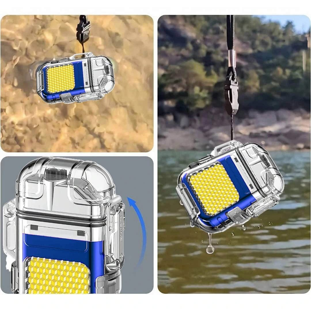 Lanternă Tip Breloc cu Brichetă, , Impermeabilă, 3 Moduri Iluminare, 300 mAh, Încărcare USB-C, COB, Rază de Acțiune 50 - 100 m, 7.4 x 4.9 x 1.7 cm