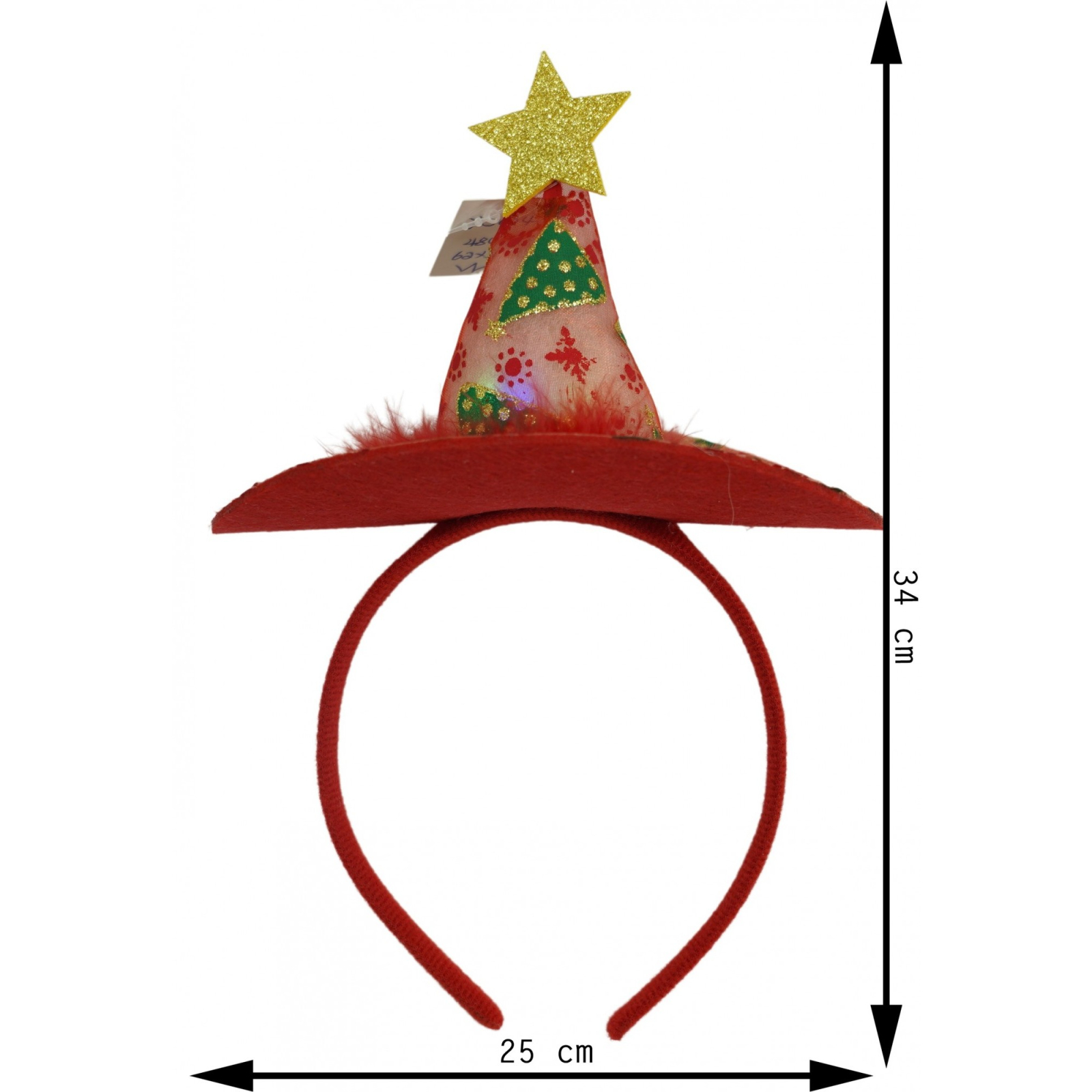 Bentita/cerc tip palarie de Craciun, culoare rosie cu led, marime standard,