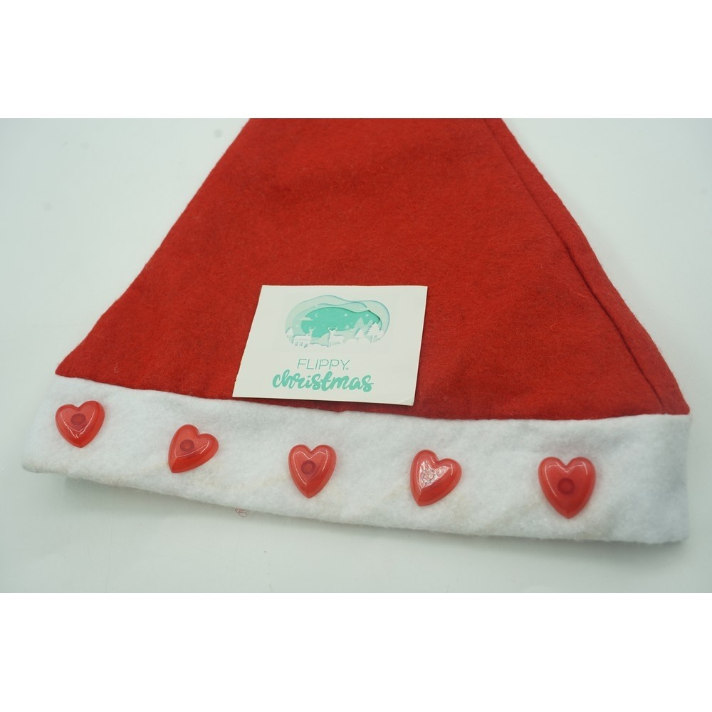 Caciulita de Mos Craciun,, cu inimi ,led si muzica, rosie, marime universala, poliester