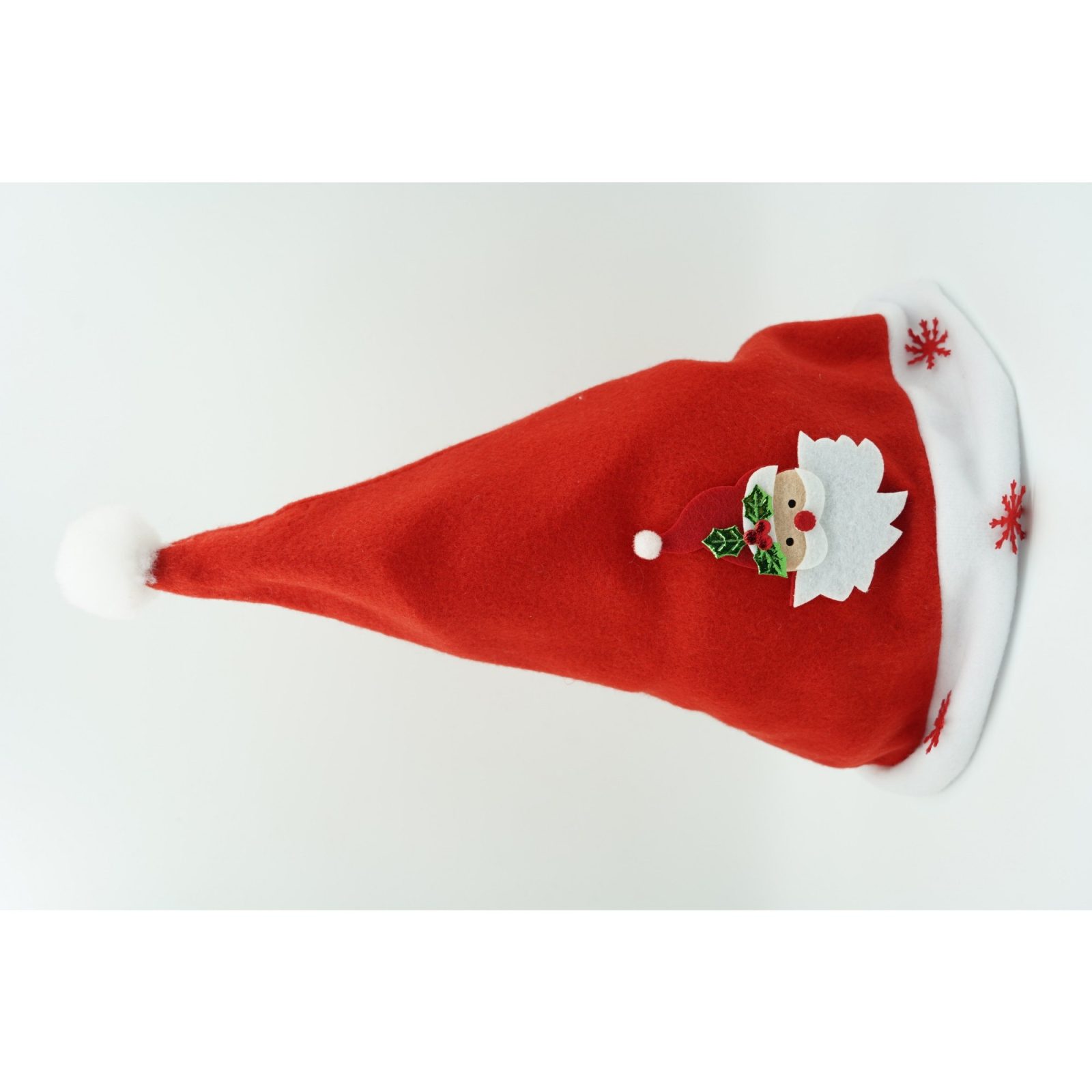 Caciulita de Mos Craciun, ,cu model de Mos Craciun si ornament fulg de nea, rosie, marime universala, material textil