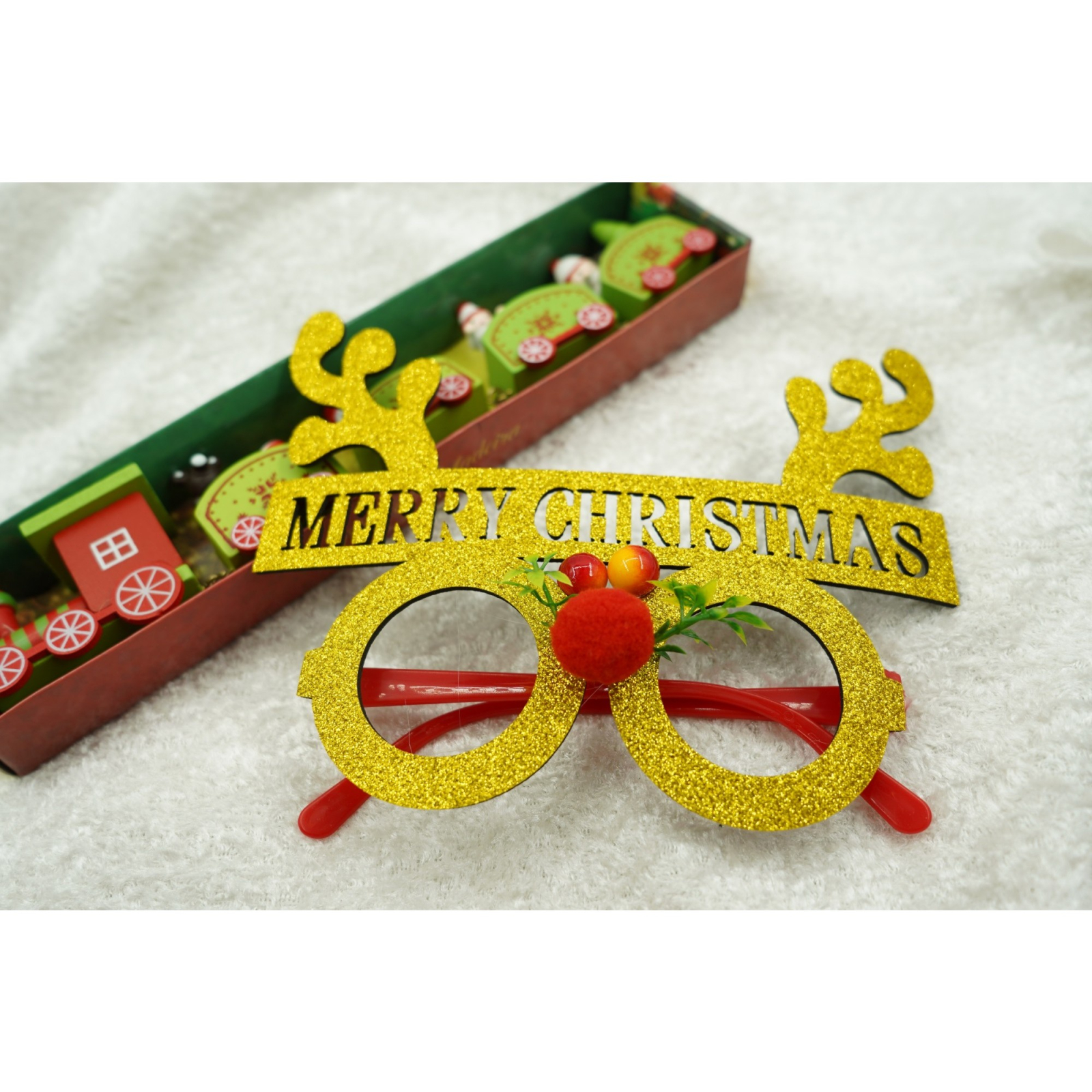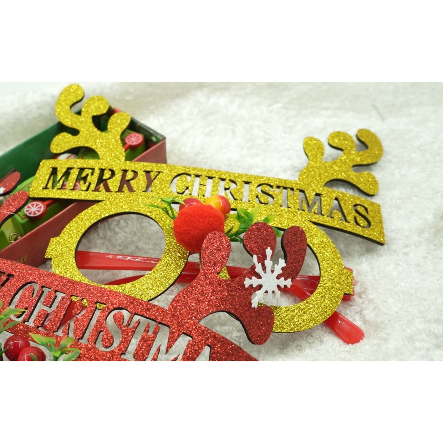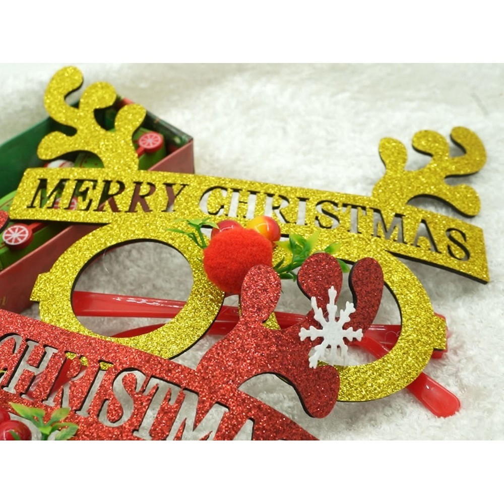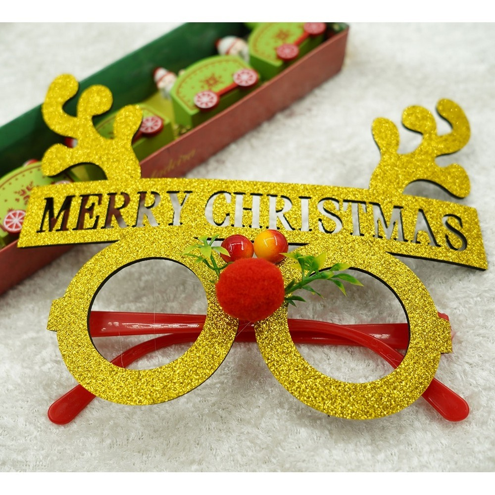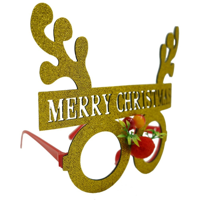 Ochelari petrecere de Craciun, rotunzi, Galben, din Plastic si Poliester,
