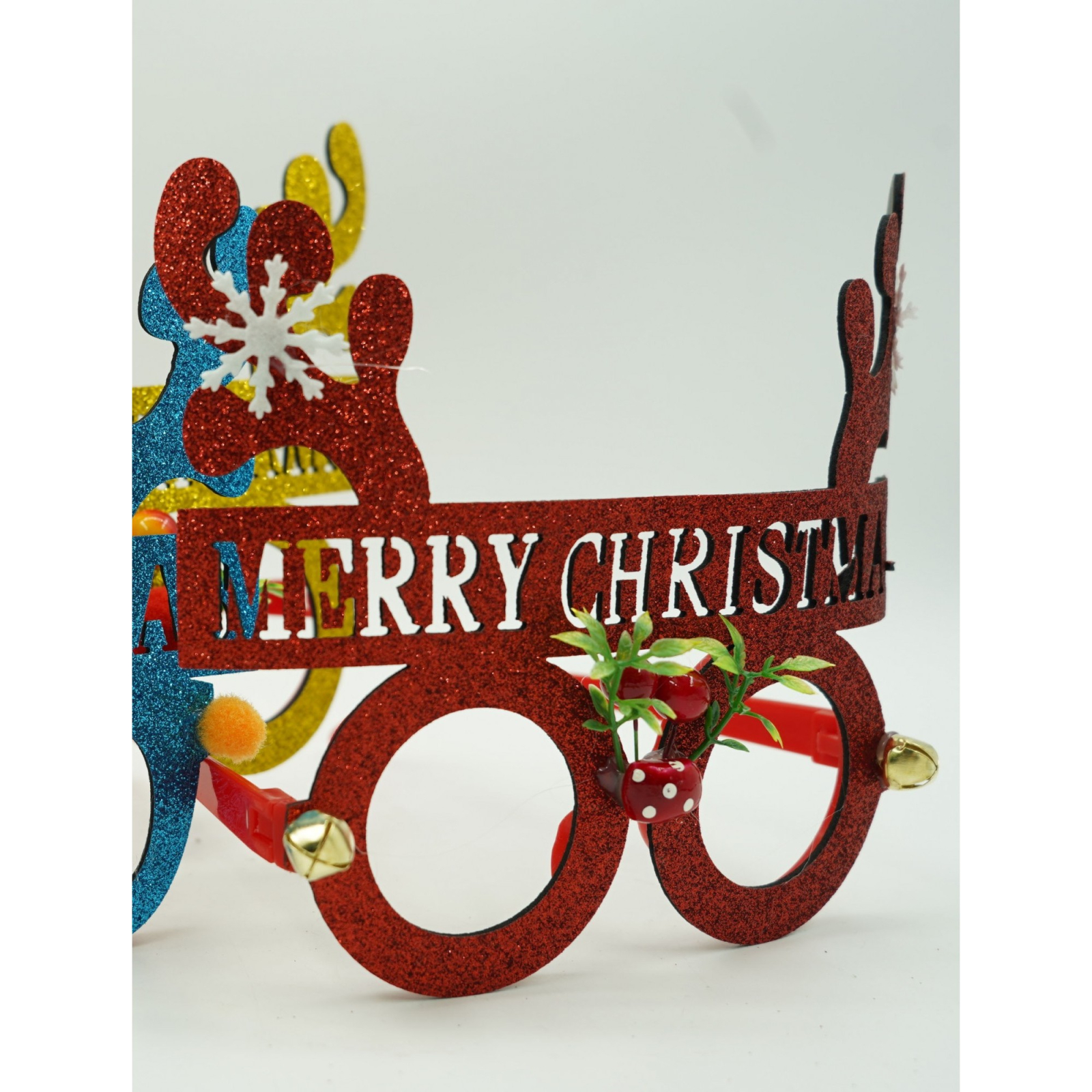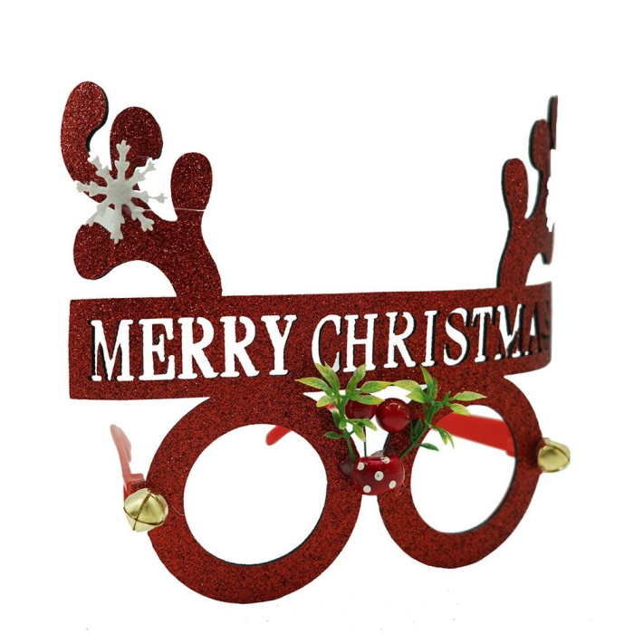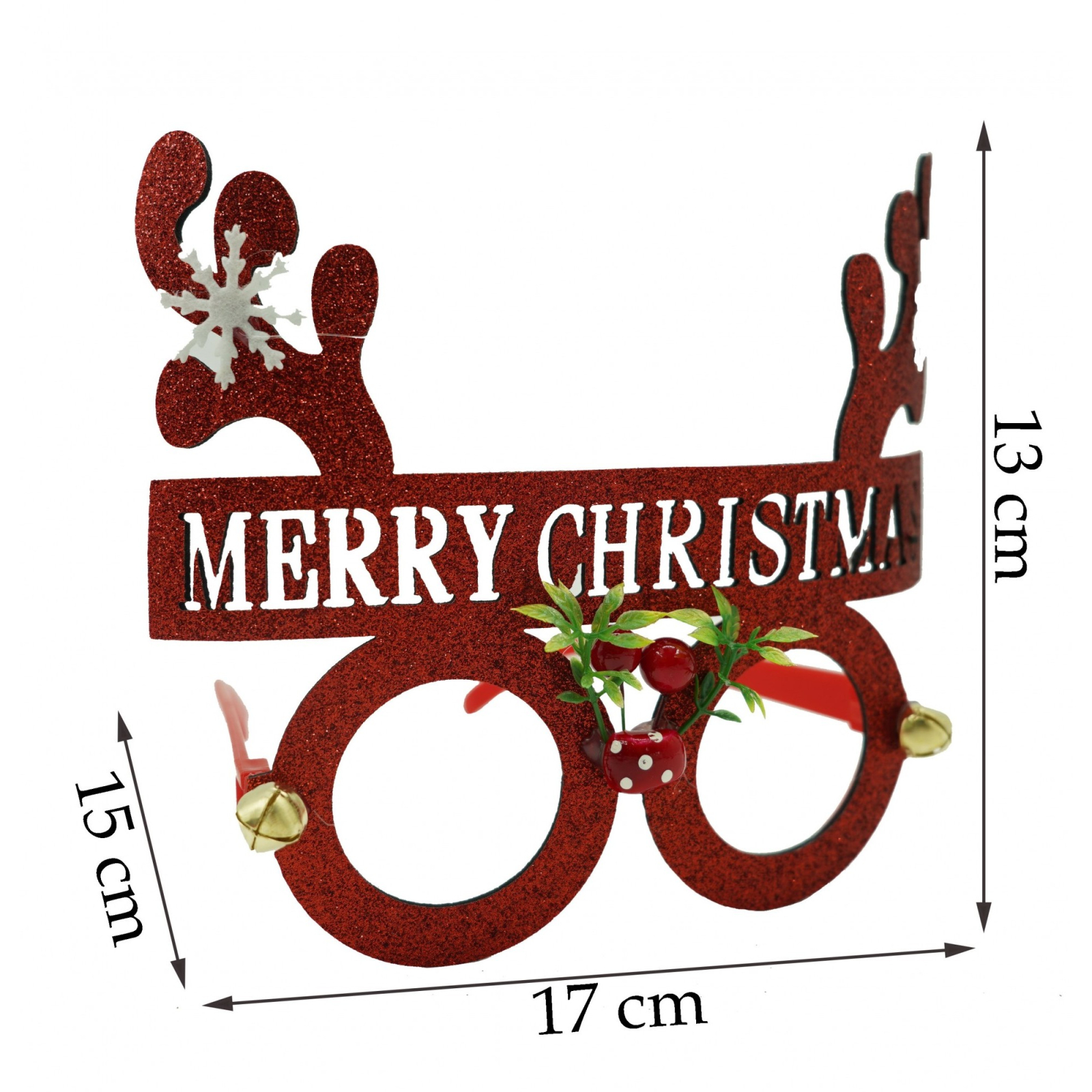Ochelari petrecere de Craciun, rotunzi, Rosu, din Plastic si Poliester,