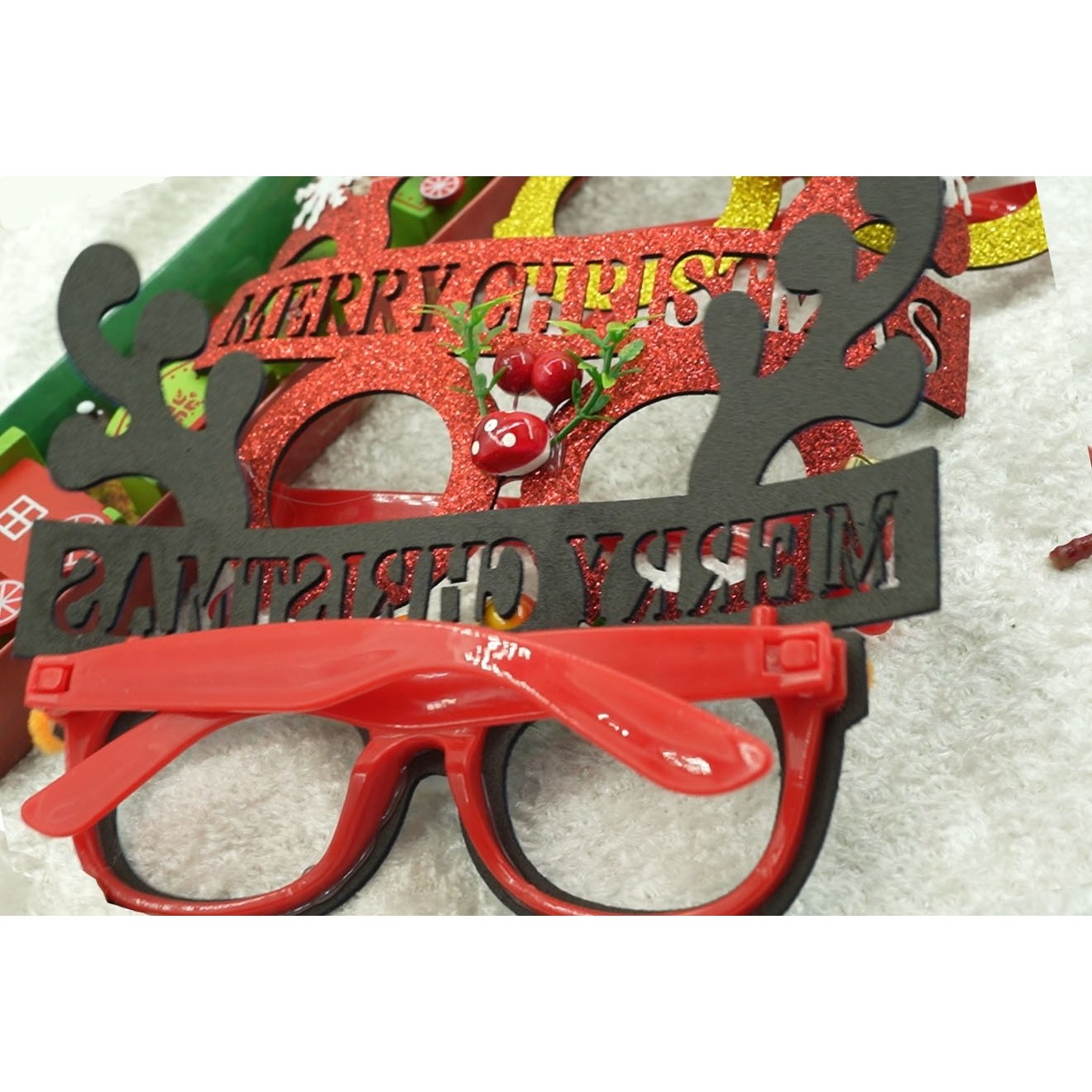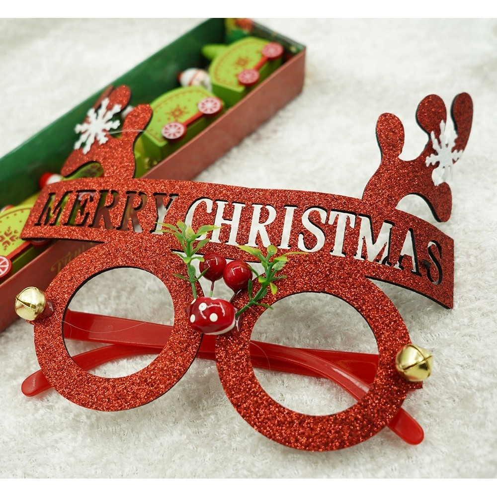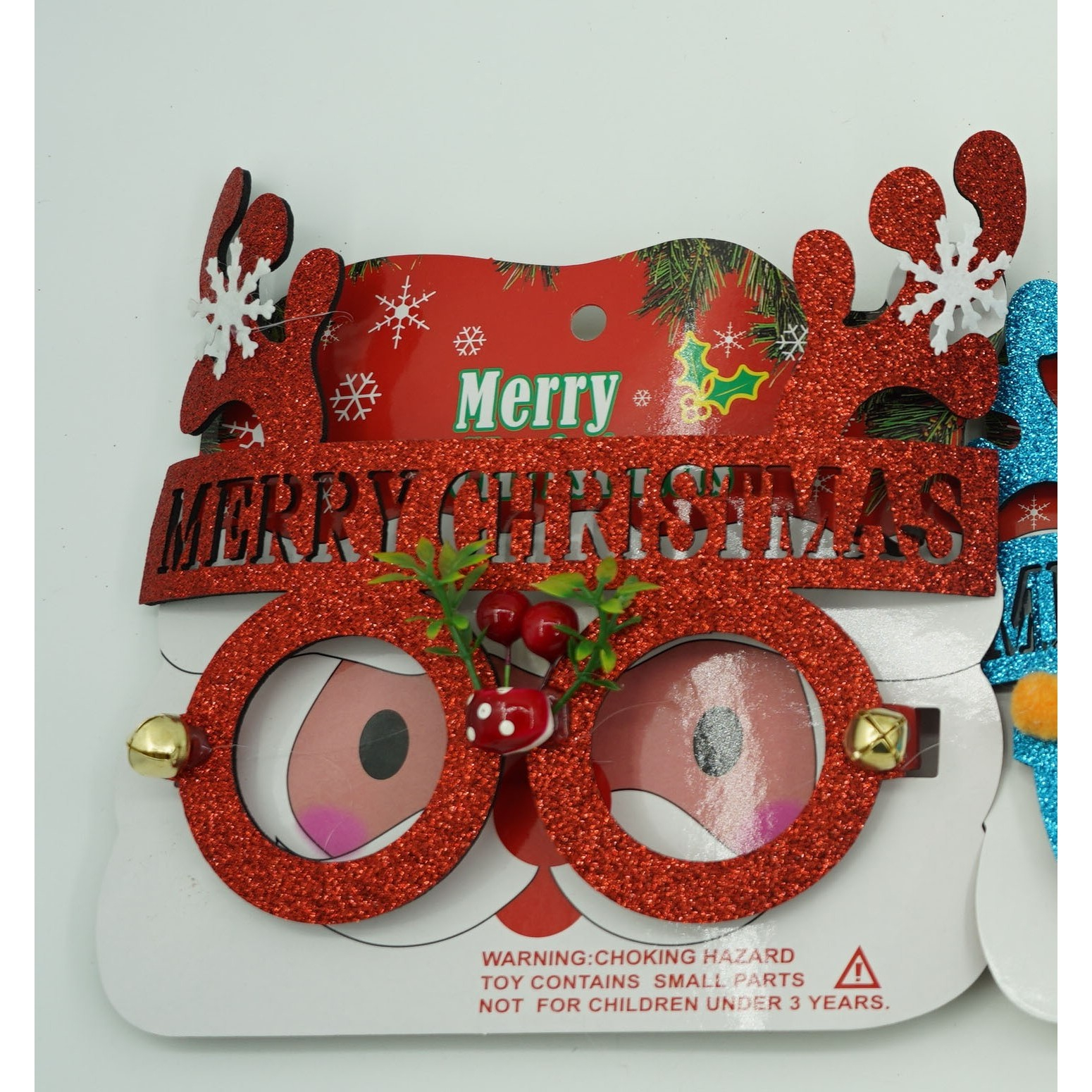 Ochelari petrecere de Craciun, rotunzi, Rosu, din Plastic si Poliester,