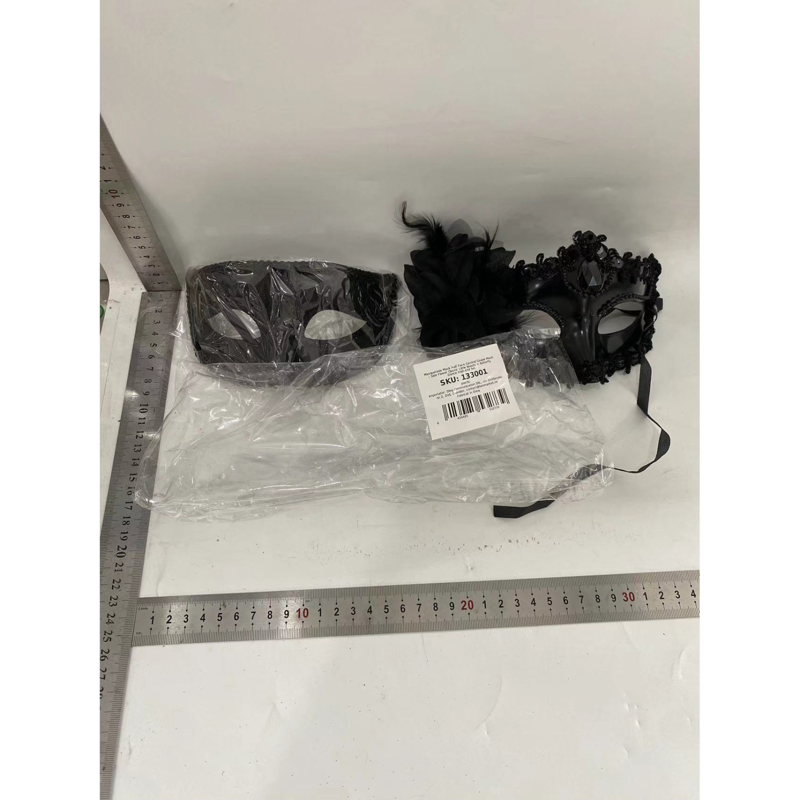 Set 2 Masti de Cuplu, , pentru Carnaval, Bal Mascat, Marime Universala, Model Floare Laterala si Margele, Model Clasic, Negru Gri