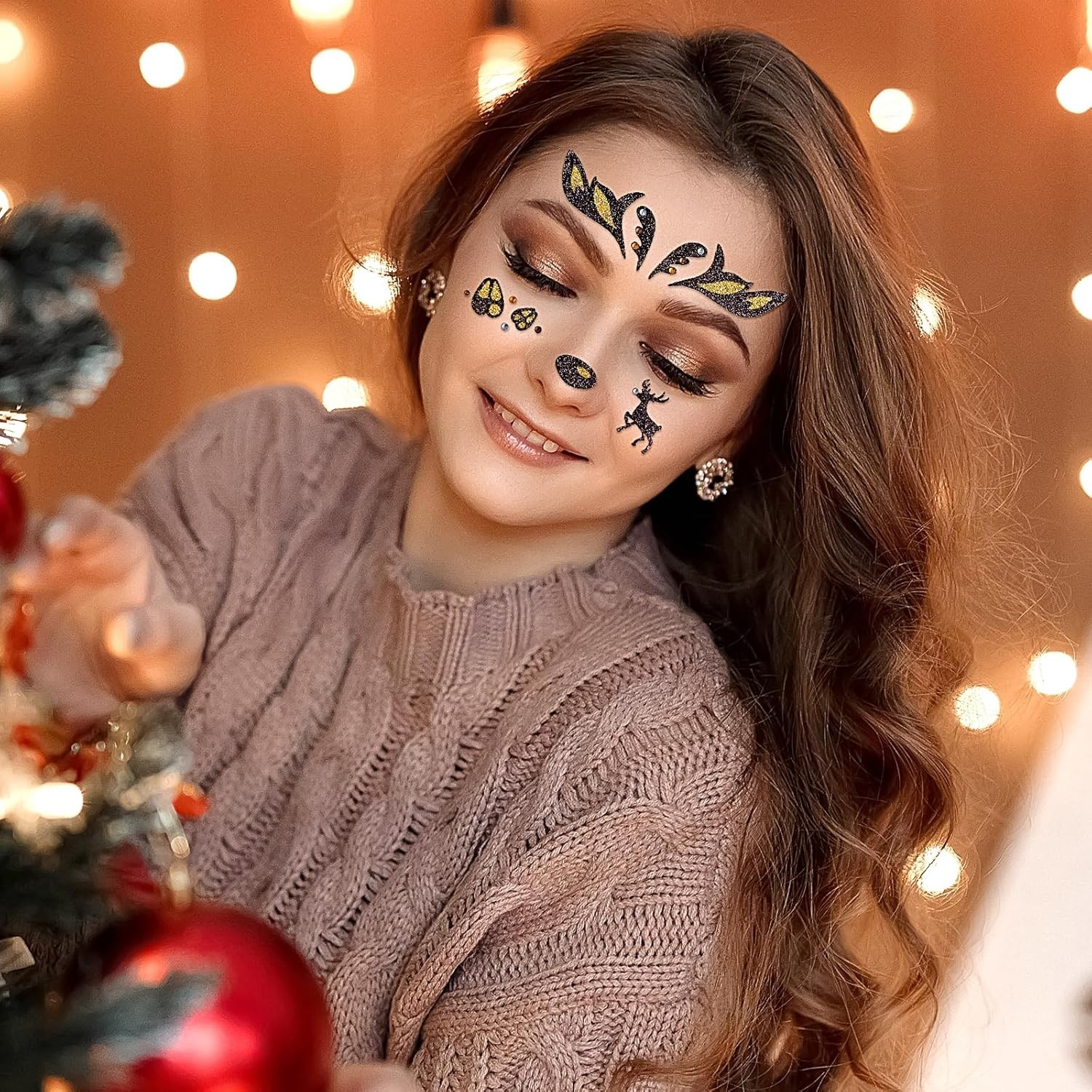Sticker Temporar pentru Fata, , pentru Machiaj, Face Art, Halloween, Teatru, Model Caprioara, Maro