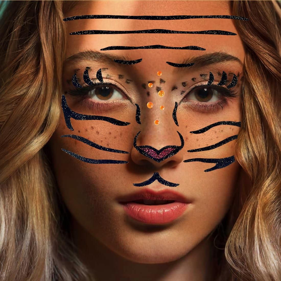 Stickerul temporar pentru față este accesoriul perfect pentru un machiaj spectaculos, adăugând un efect unic și strălucitor oricărei apariții.