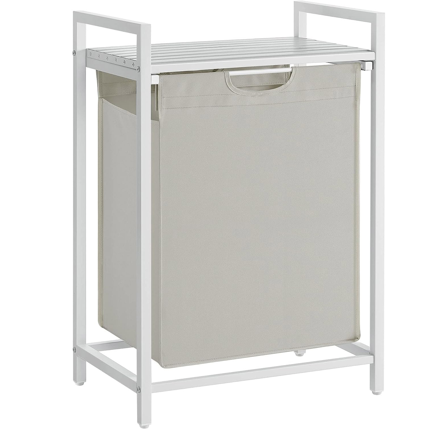VASAGLE Cos de rufe, sac de rufe detasabil, raft, cadru metalic, 65L, 50x33x72 cm, alb